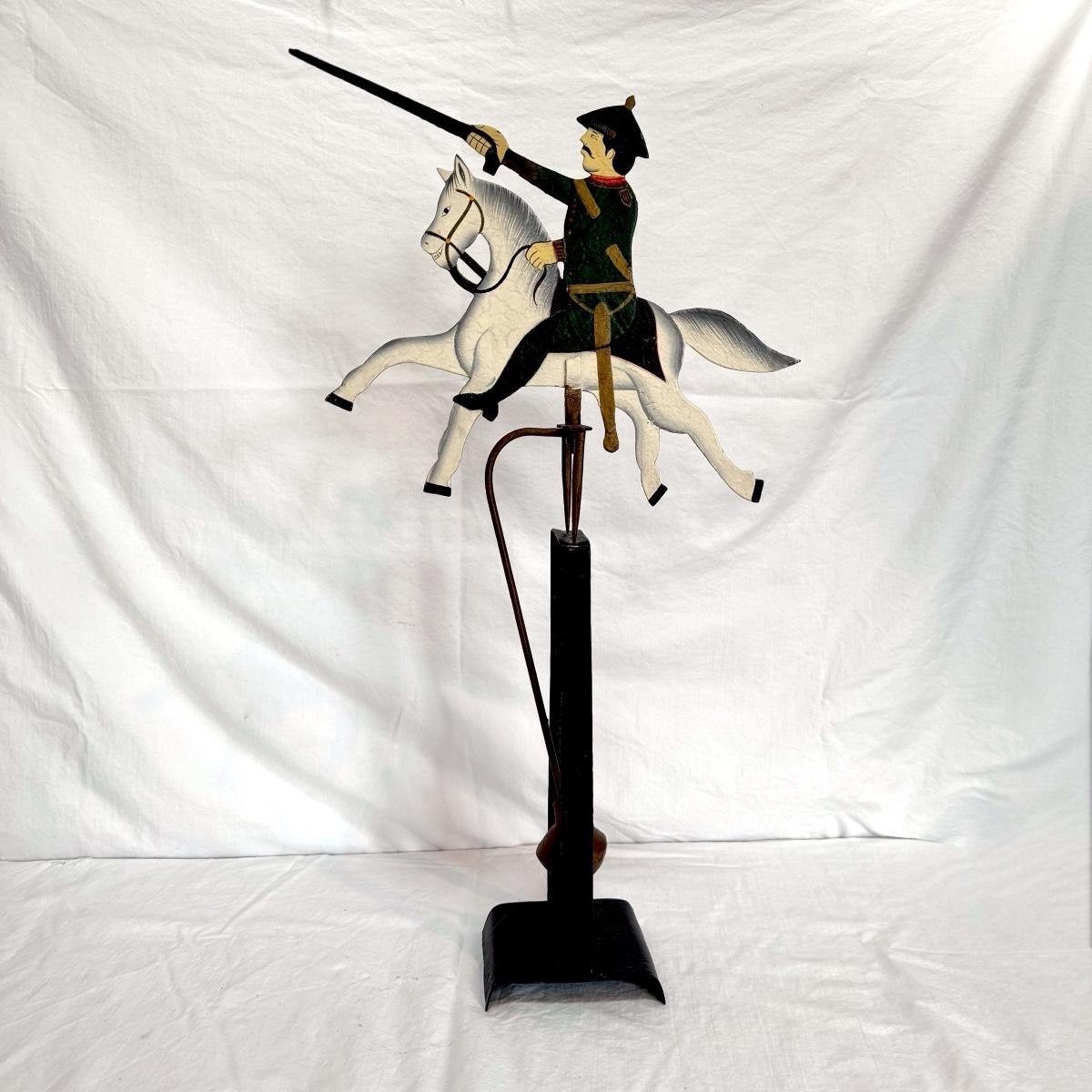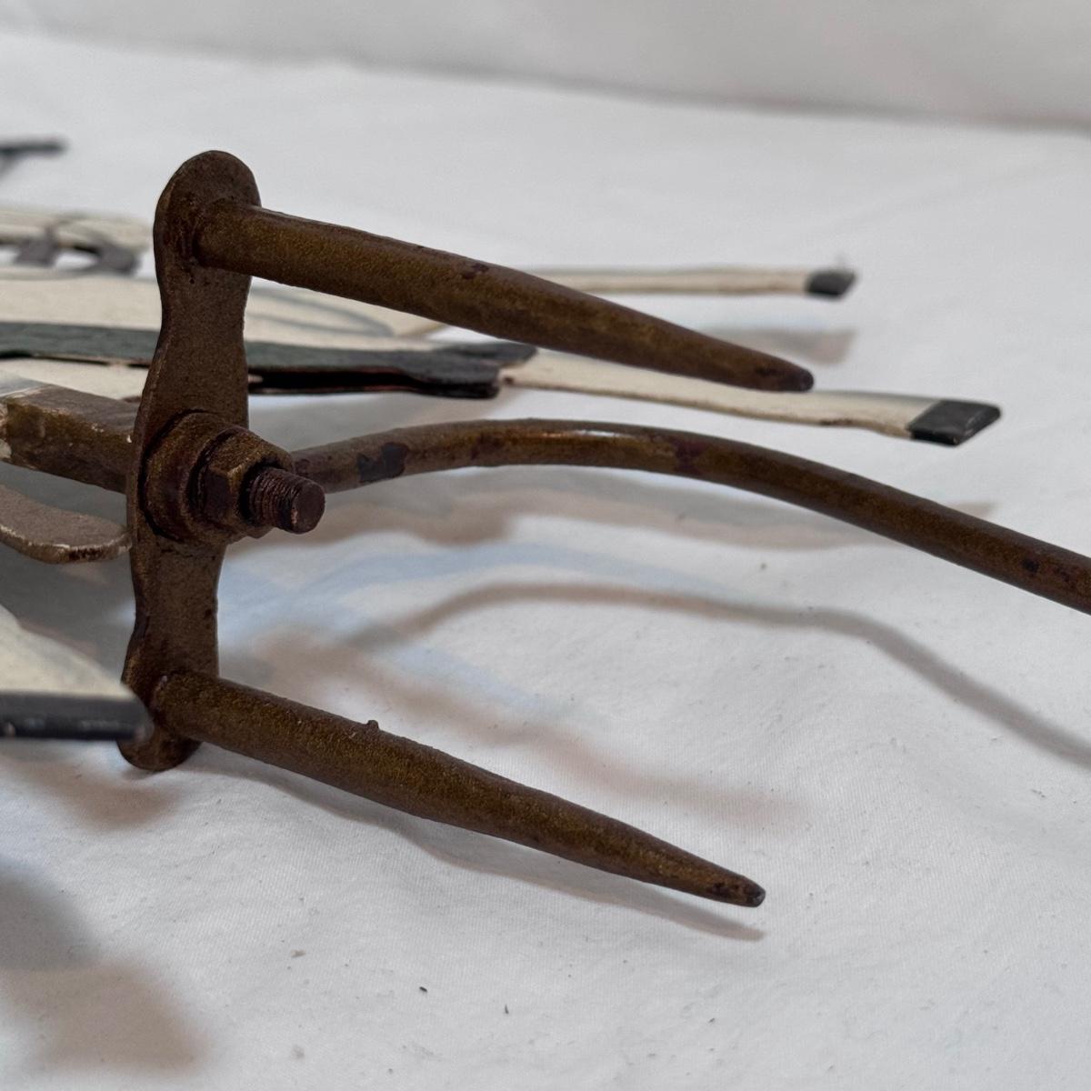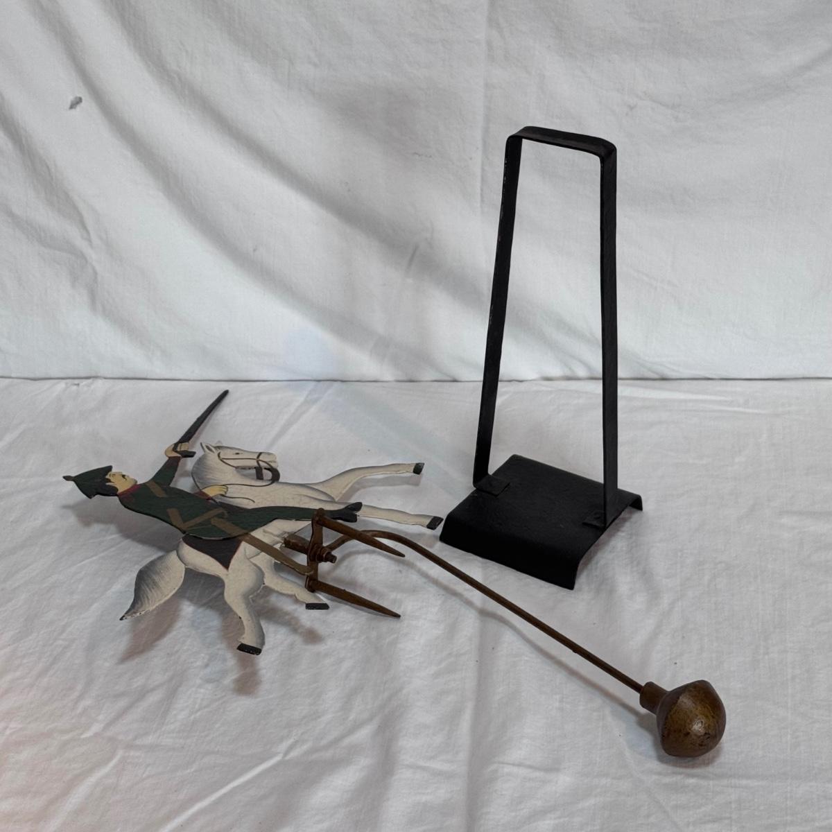 This lot includes one Sky Hook pendulum balance toy that displays a soldier on a horse. It appears to be a reproduction balance toy from LS Decoration. The balance toy is made of very sturdy metal and measures 15” x 4.5” x 25”H. Shipping available.