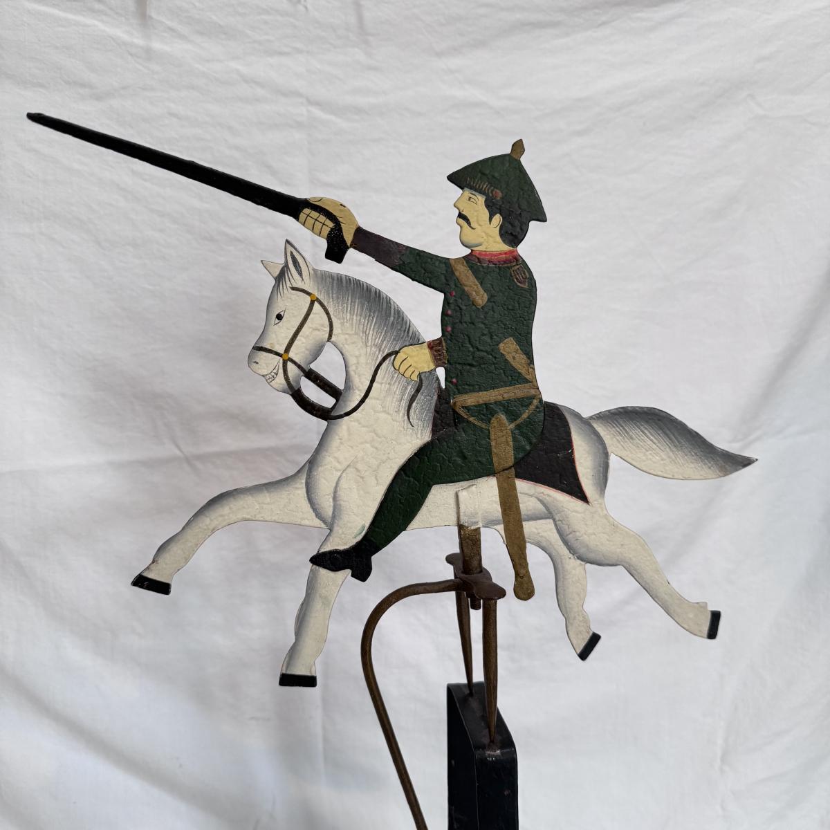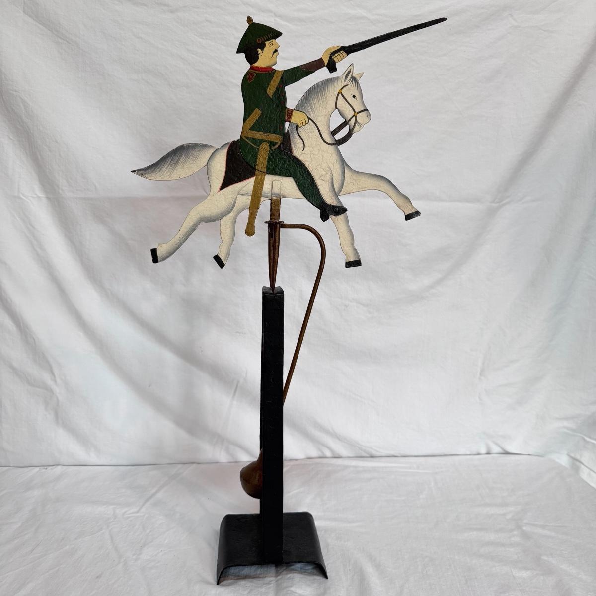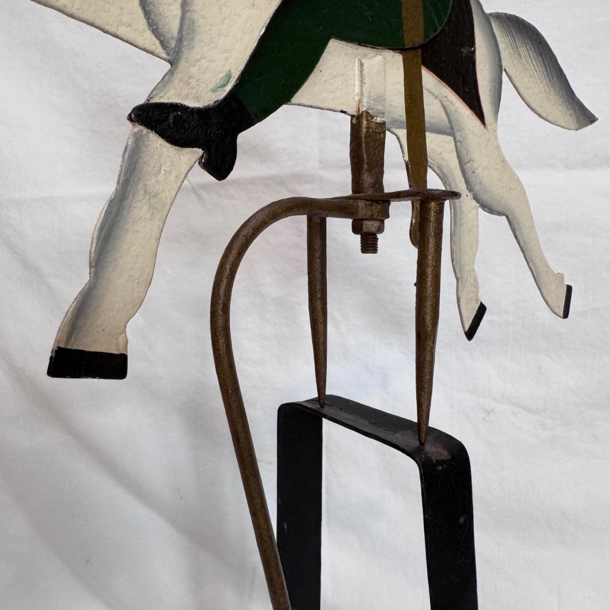 This lot includes one Sky Hook pendulum balance toy that displays a soldier on a horse. It appears to be a reproduction balance toy from LS Decoration. The balance toy is made of very sturdy metal and measures 15” x 4.5” x 25”H. Shipping available.