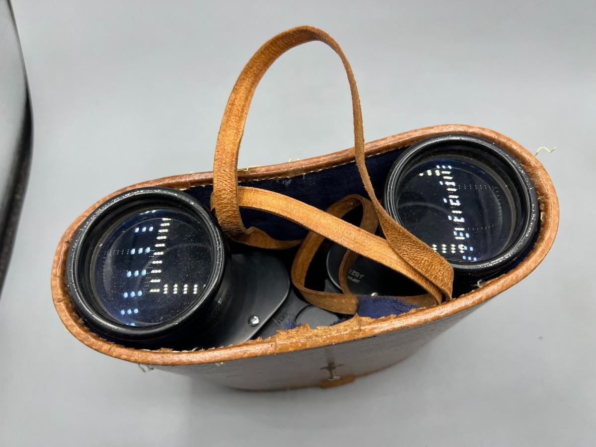There is no significant damage to the binoculars and is in overall good collectible or useable condition. The travel vase is worn and the lid has been broken off, check pictures for more details and for sizing.