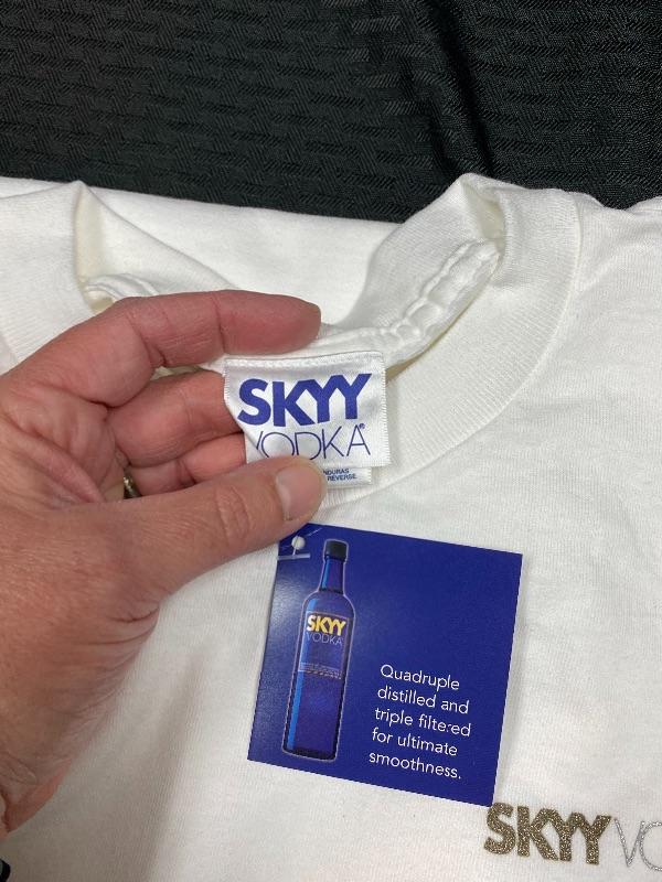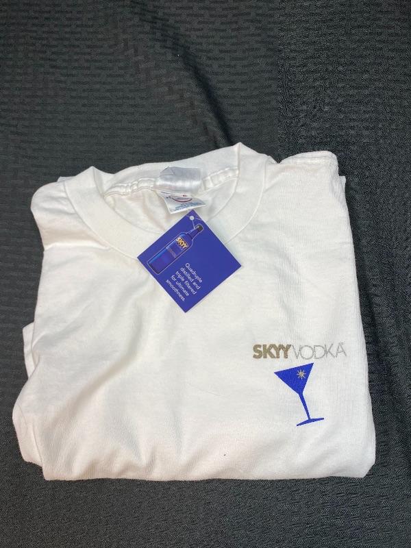 Skyy Vodka white promo t-shirt. Has logo on chest. Still has original hang tag. Size XL.
