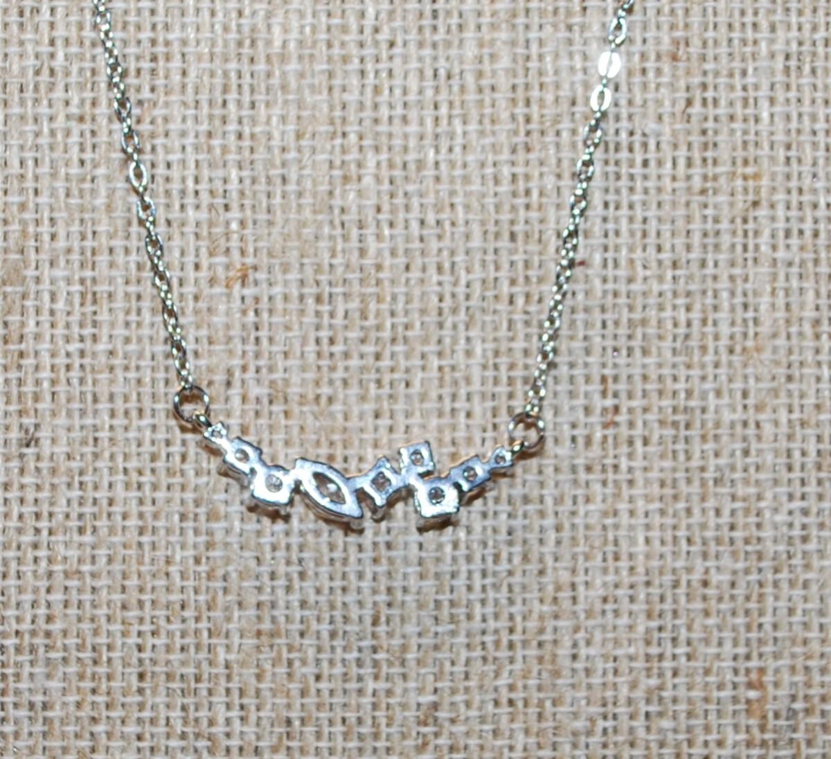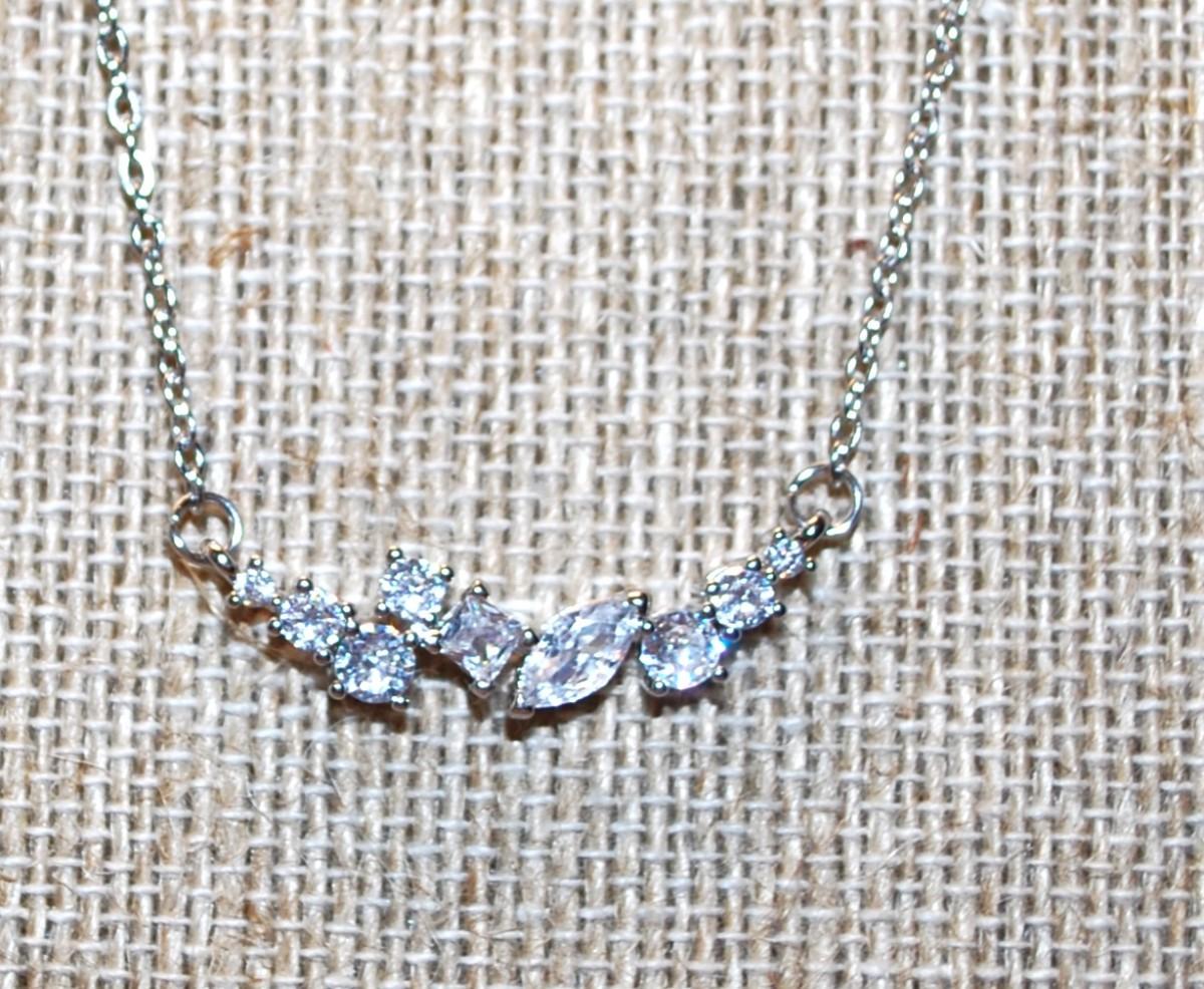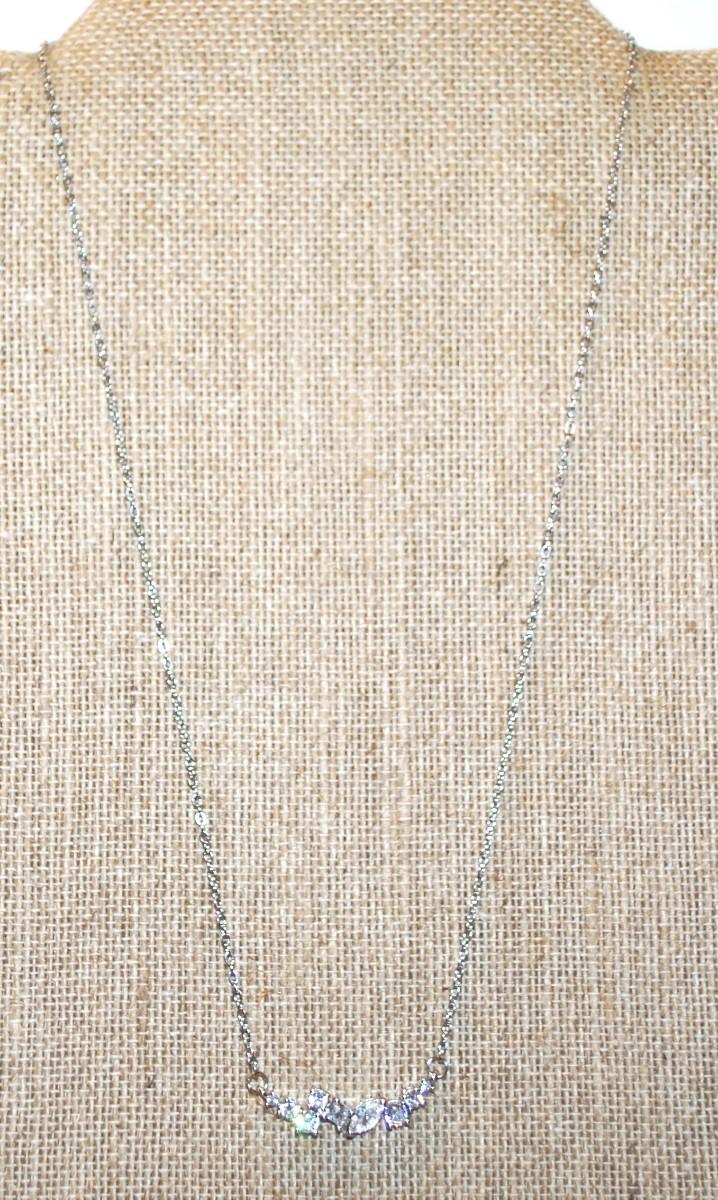 Slanted Pear Shaped Diamond Style Swag PENDANT (2¼" x ¼") & Accent Stones on a Silver Tone Necklace Chain 18" L