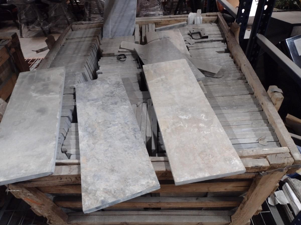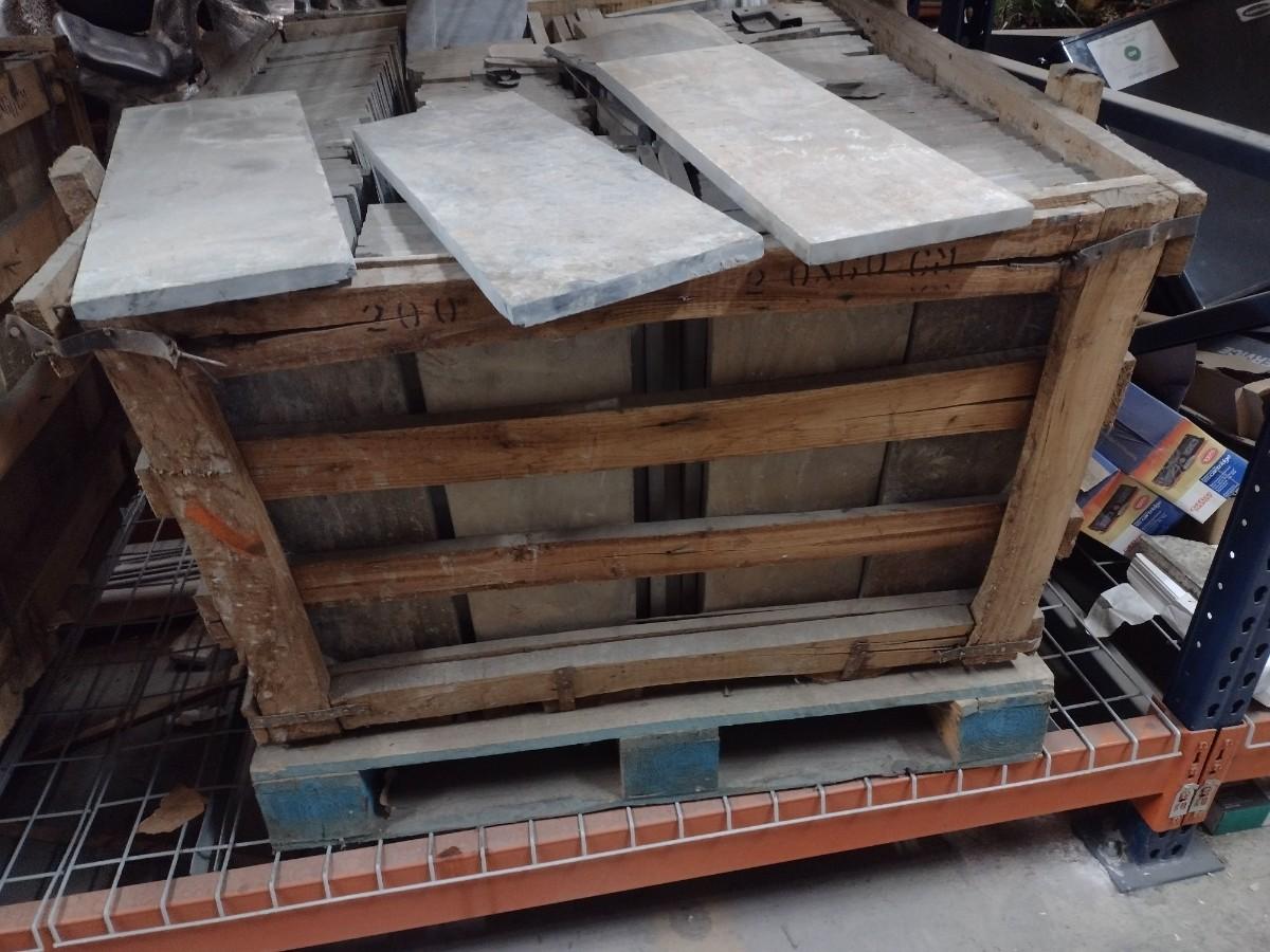 Crate of Solid Slate Stone Flooring Planks 24"x8"x 3/4" Choice A Forklift driver available Shipping option via freight or local mover is Buyer's responsibility and expense. Buyer must have all shipping scheduled within the stated dates and times of pickup. Recommended local movers are Beaty Bros. Moving 828-201-2982 and Carolina Pack n Go 828-489-977