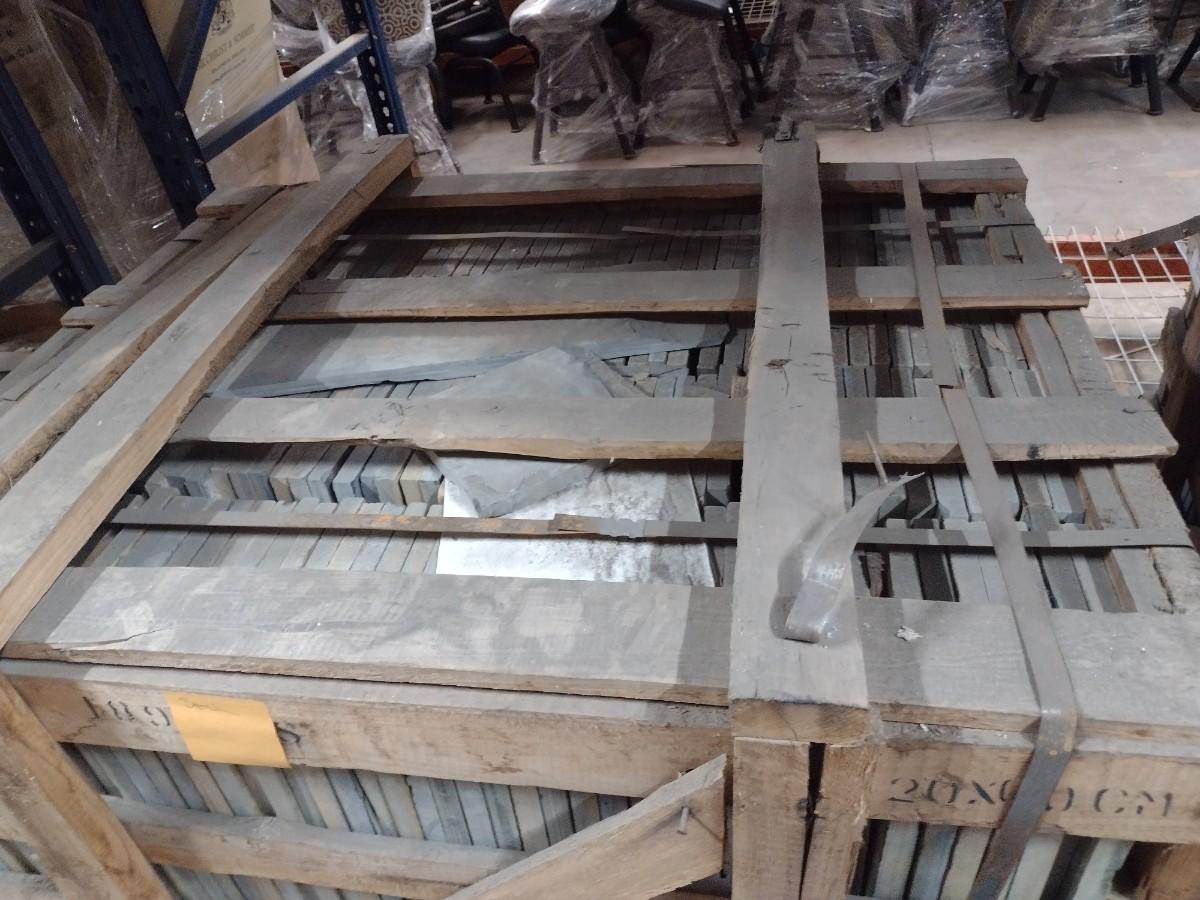 Crate of Solid Slate Stone Flooring Planks 24"x8"x 3/4" Choice B Forklift driver available Shipping option via freight or local mover is Buyer's responsibility and expense. Buyer must have all shipping scheduled within the stated dates and times of pickup. Recommended local movers are Beaty Bros. Moving 828-201-2982 and Carolina Pack n Go 828-489-977