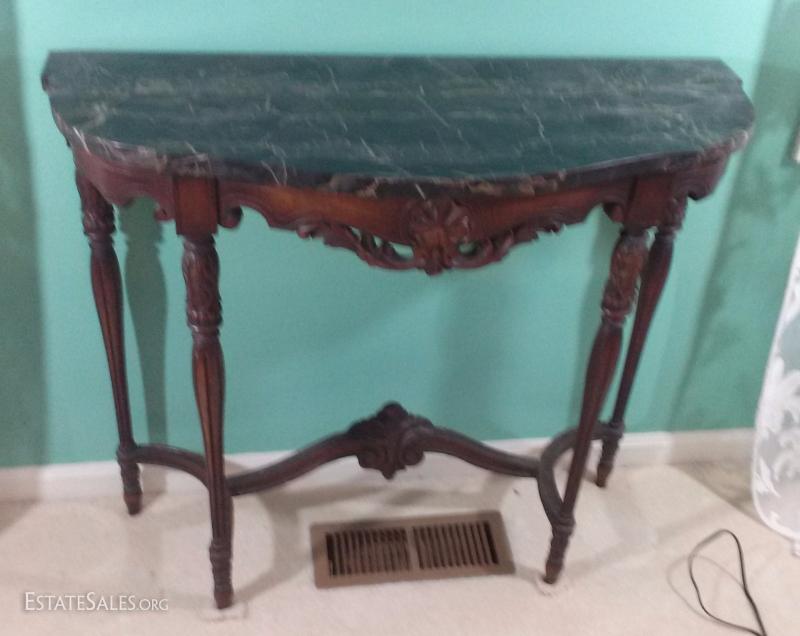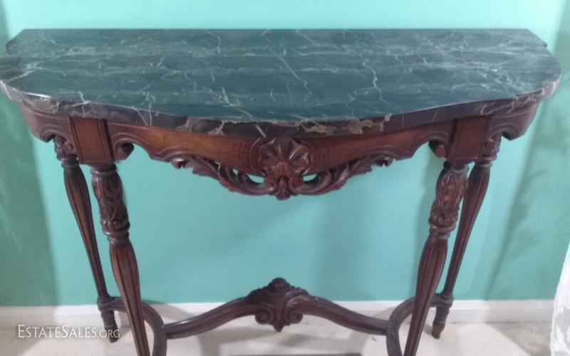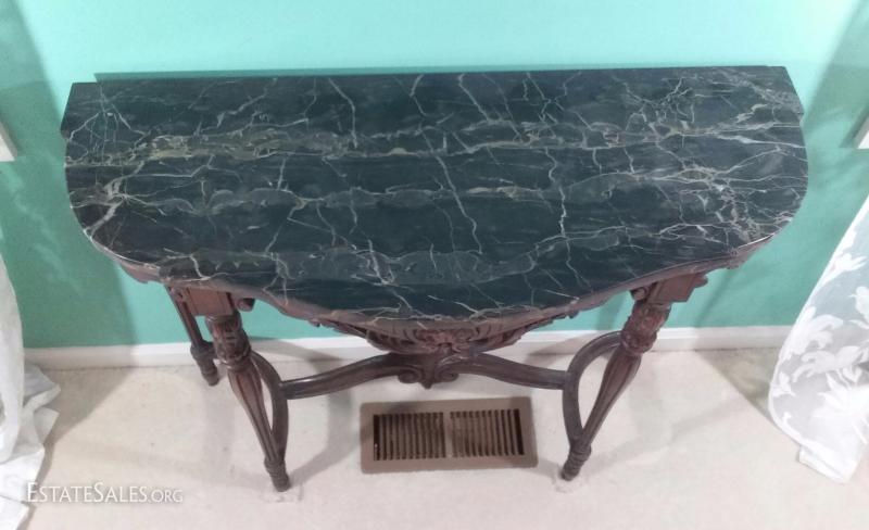 Slate top wall table (no drawer) ornate wood carving 36"x14"x32"