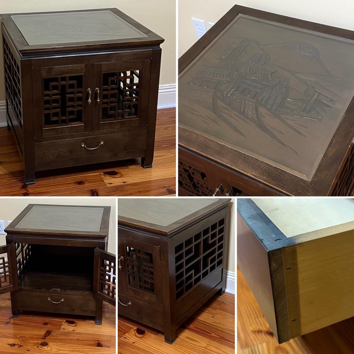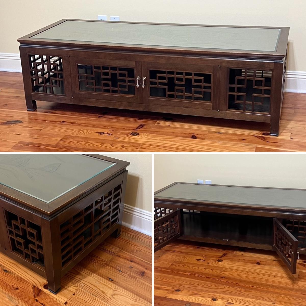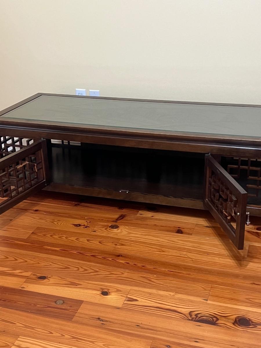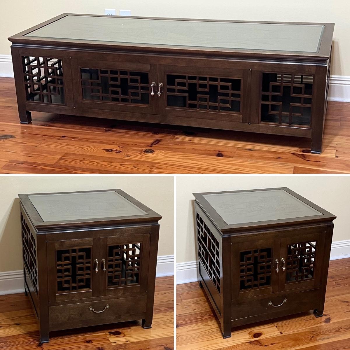 Three (3) Piece Solid Wood Asian Beveled Glass Top Coffee Table Set ~ *Read Details