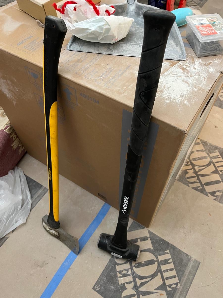 Axe has seen little use and the husky sledge hammer has a 10 lbs head.