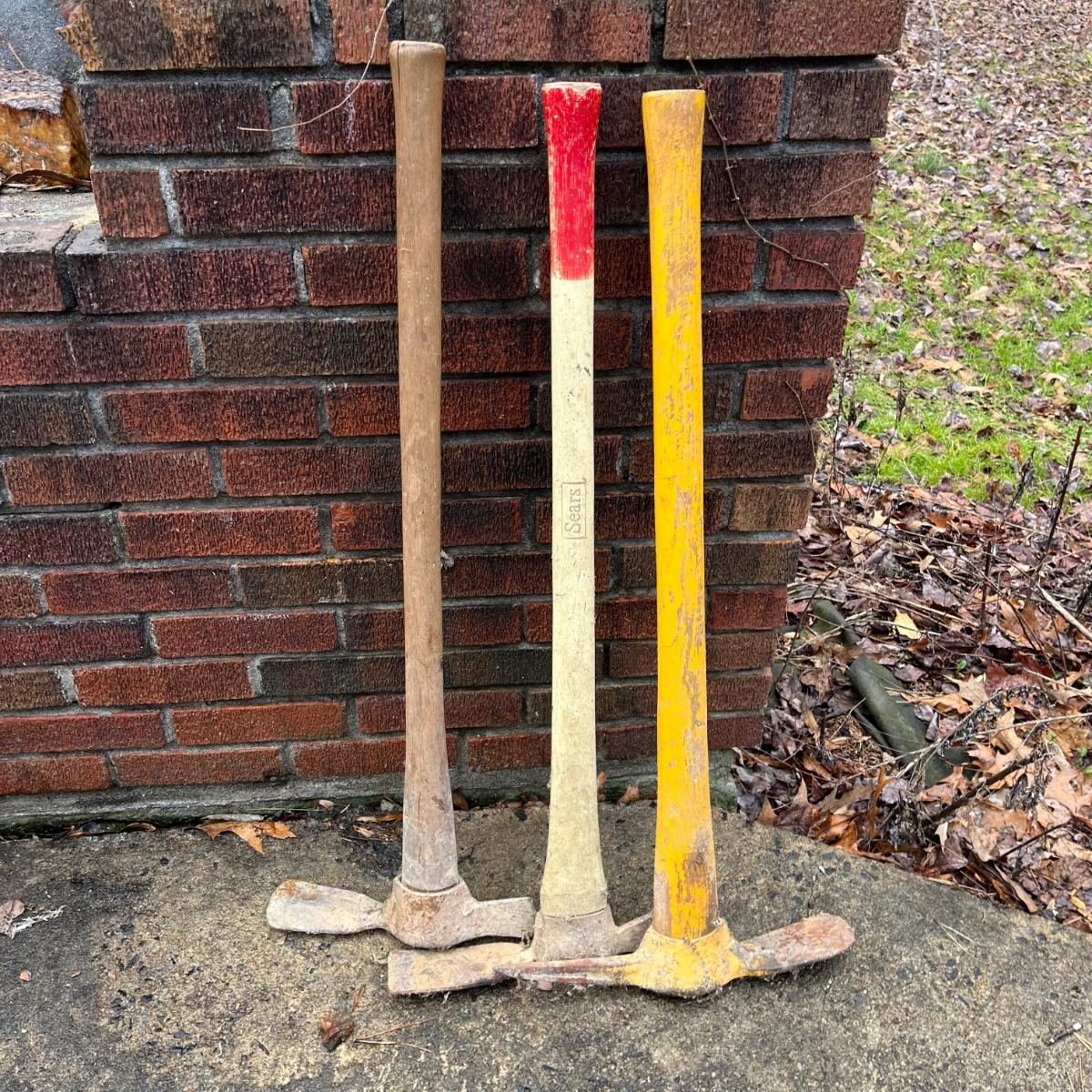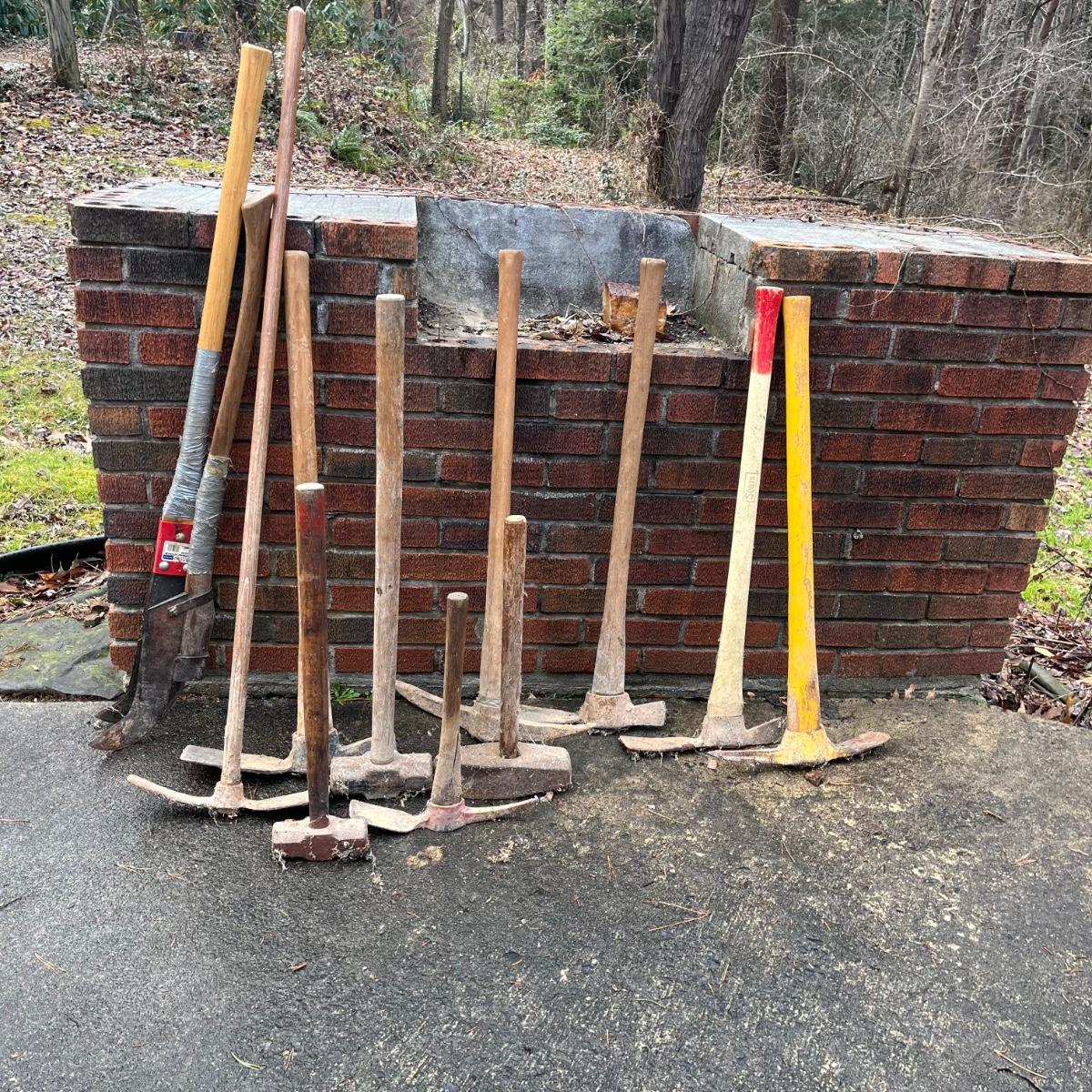 Lot includes three sledgehammers, seven pickaxes, and two ditch bank tools.