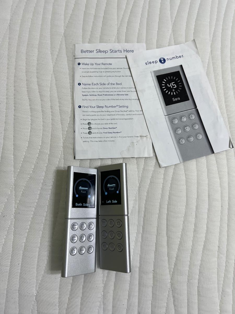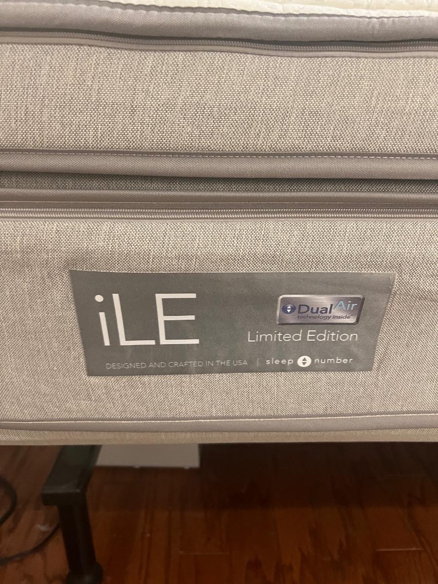 SLEEP NUMBER iLE Limited Edition King Split Adjustable Bed & Frame Measures floor to seat at 26 inches. Comes with everything pictured. Head can be raised, feet can be raised, and there is a timer setting. Note there is a spot on the uncovered mattress that would need cleaning, The mattress cover has a very small black dot (maybe marker) and a discolored spot. Please see pictures. Winning bidder may chose to leave the mattress behind.