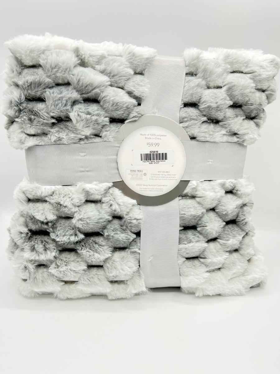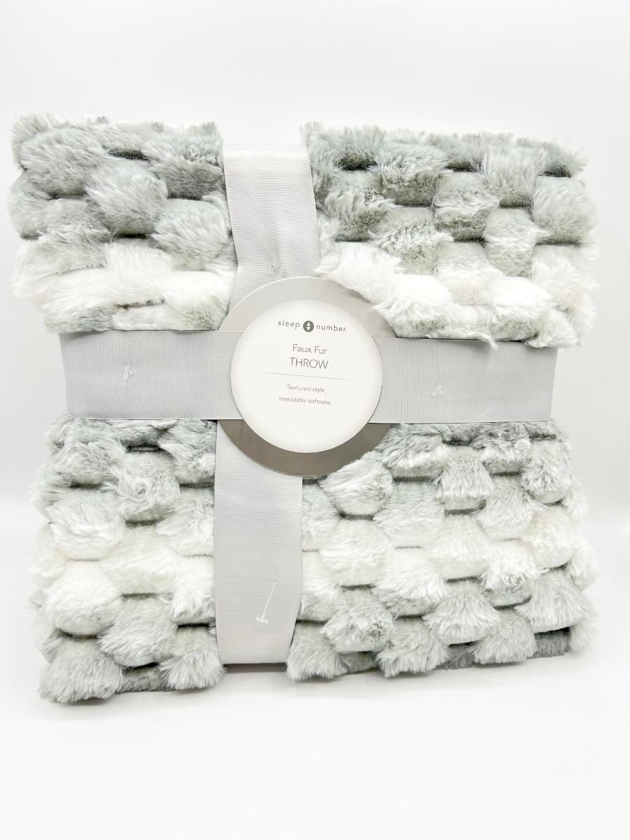 SLEEP NUMBER ~ Textured Faux Fur Throw ~ 50" x 70" ~ Gray Ombre