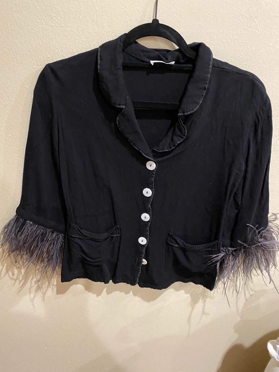 Sleeper shirt by Froztech. Feather trimmed sleeves. Size S