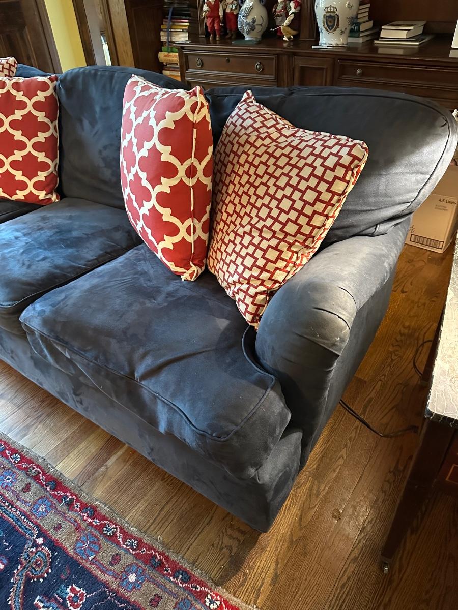 NAVY CRUSHED VELVET SLEEPER SOFA, DOWN CUSHIONS 81X45X30