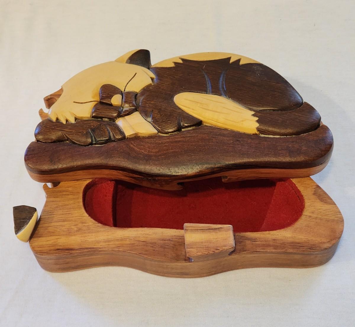 Sleeping Cat Puzzle Box - Trinket or Jewelry Box