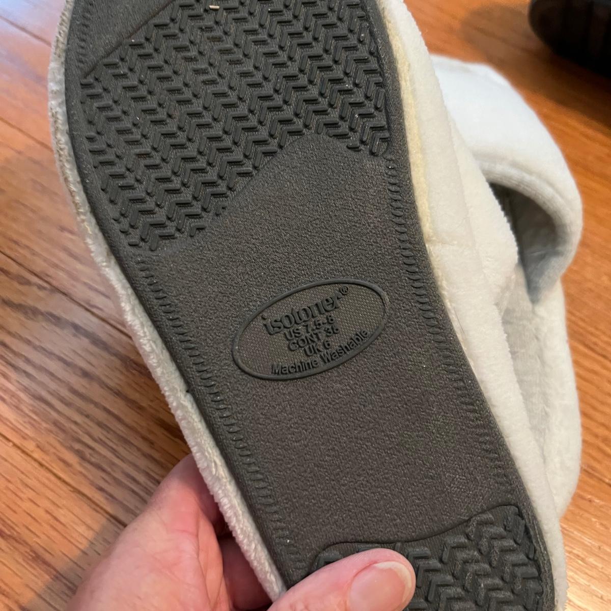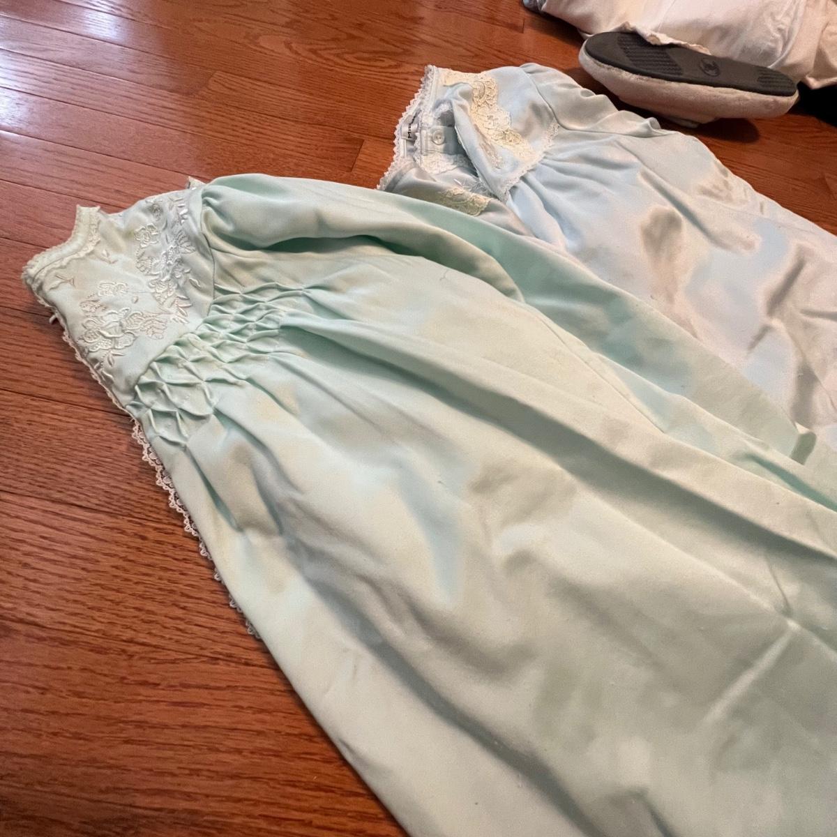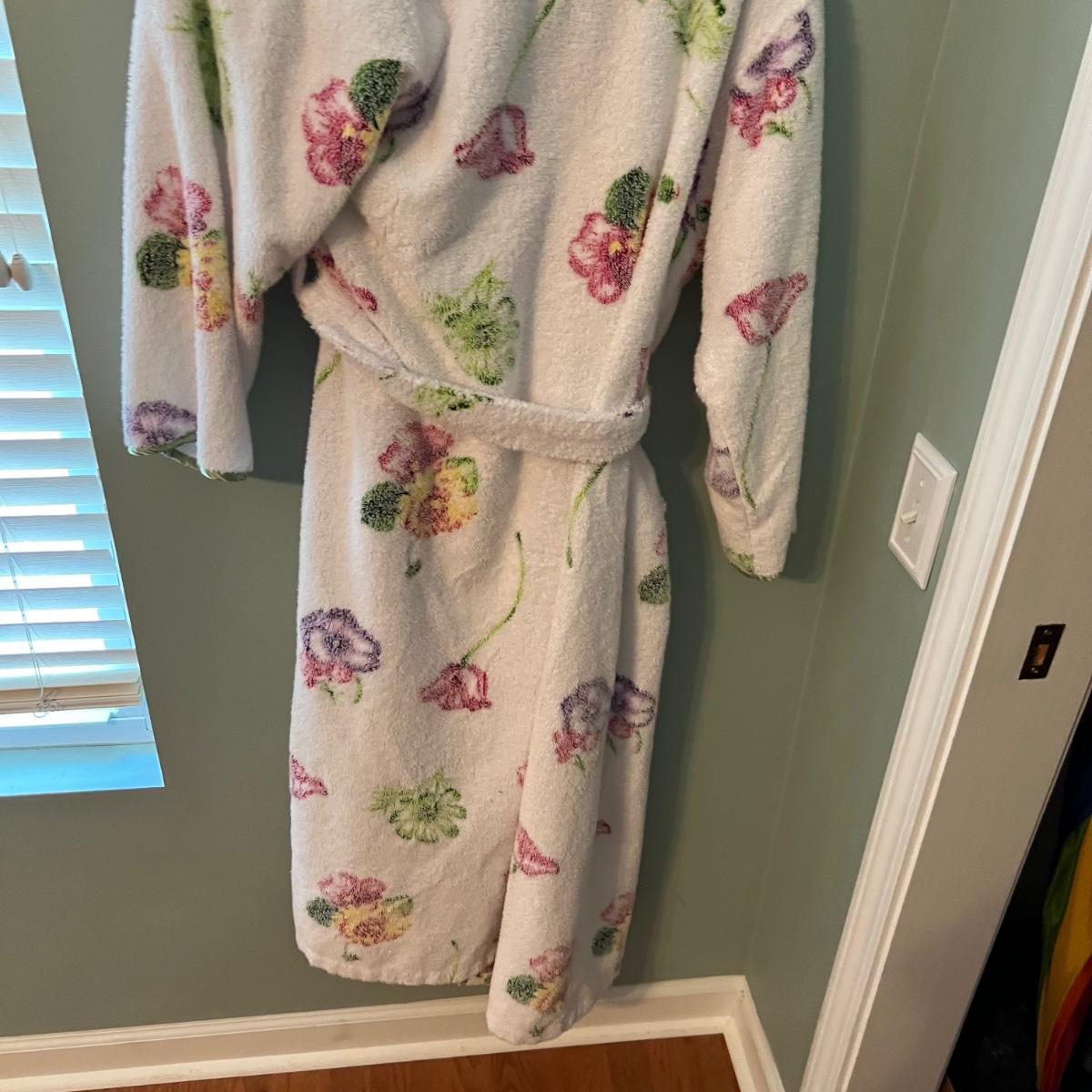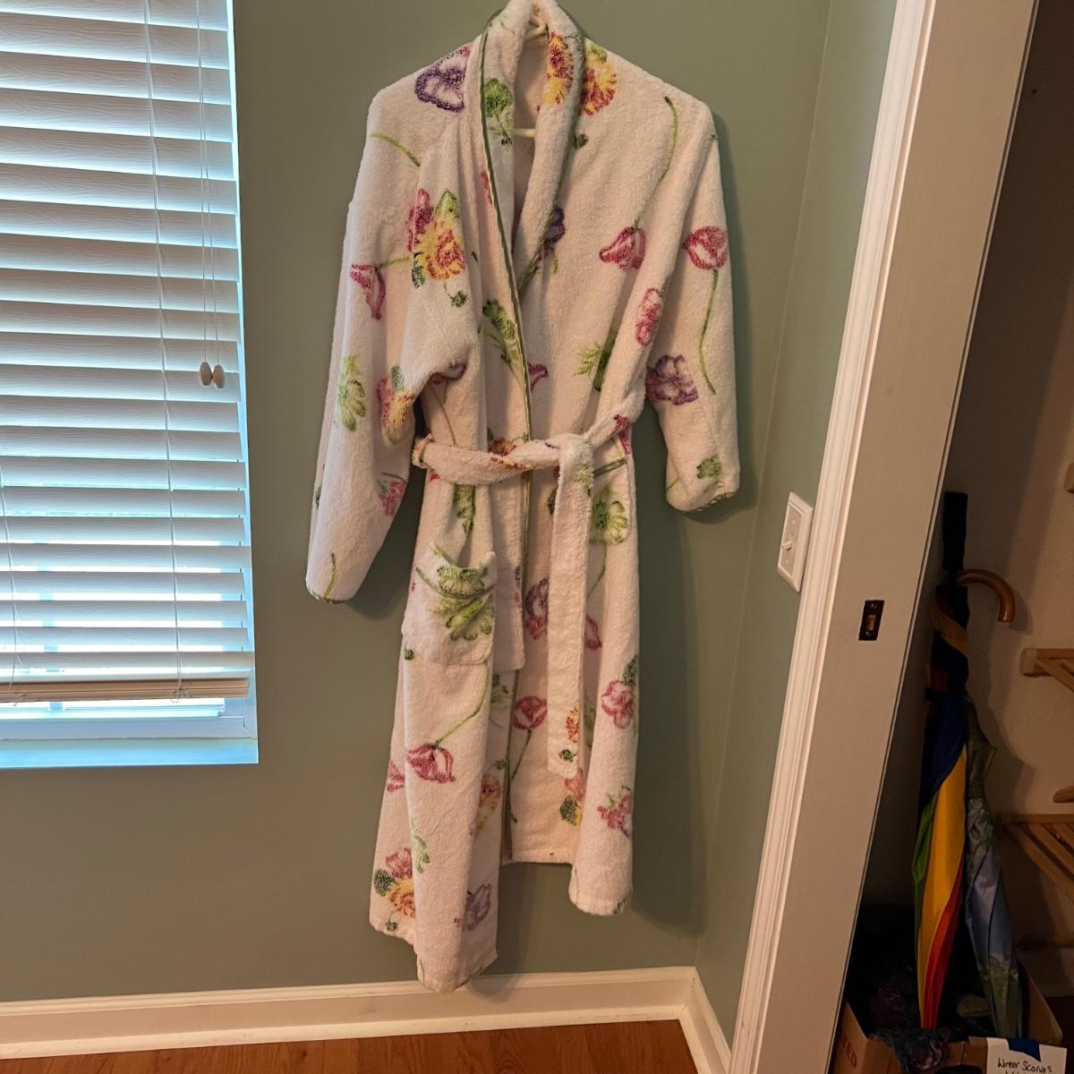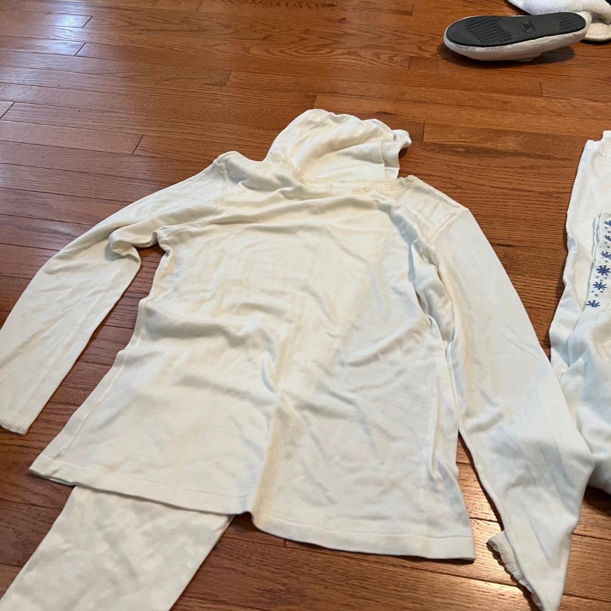 Dressing gown, night gowns, slippers and more in this sleepwear lot. Three pairs of slippers are size medium and the clothing is a mix of medium and large. The two piece pajamas has no size label but as it’s stretchy would assume it’s M/L.