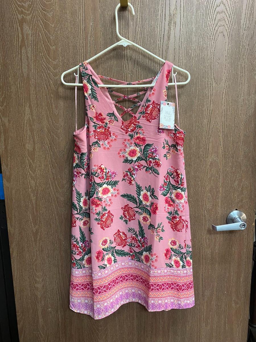 Sleeveless Pink Floral Pattern Springtime Summer Dress Coverup NEW with Tags Medium. From Pink Rose Vintage. Above the knee length.