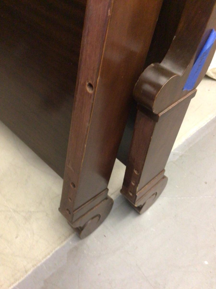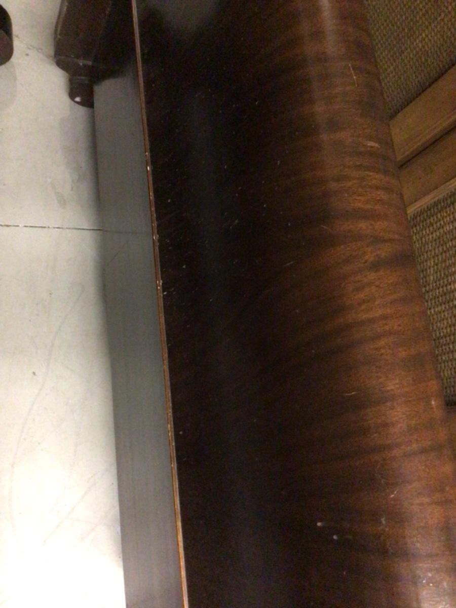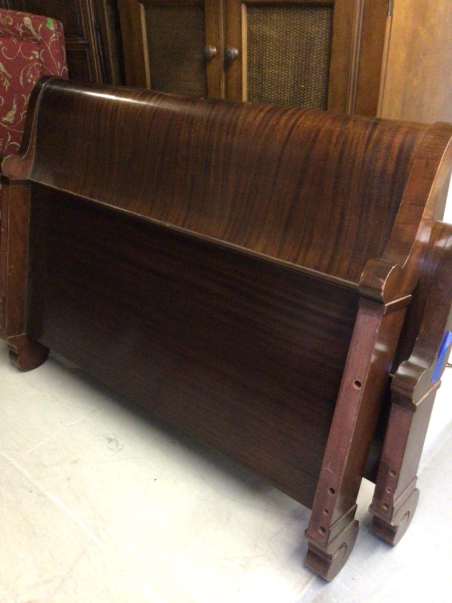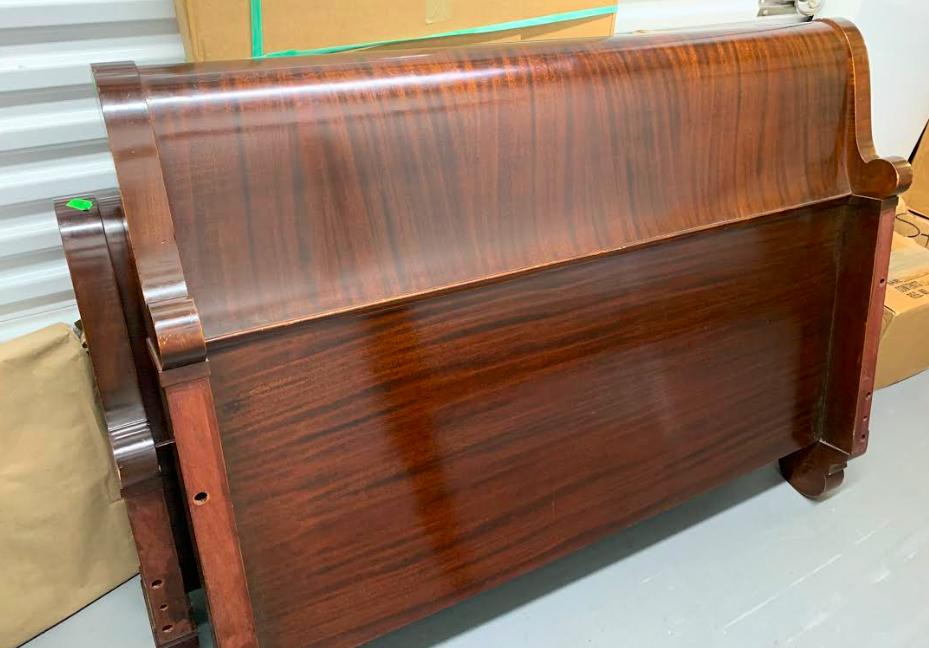 Flame Mahogany. Full bed size. 56”wide. Headboard is 46” high. Comes with side rails. Some spots to footboard. Needs to be polished. This is a heavy item. You must bring help to move this item into your vehicle. Local delivery may be able available at cost to the buyer. If you need an item to be delivered then please coordinate with us once you have purchased the item. Pick Up of Purchased Items will be on Saturday the 16th at Morningstar Storage in Bluffton, SC. 1110 Fording Island Rd, Bluffton, SC 29910. At the end of the sale todayI will send out a SignUpGenius link to the winning bidder to schedule your your pick up time along with a contact phone number.