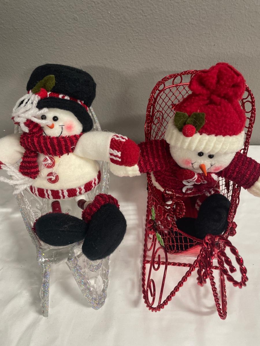 2 smaller sleighs with snowman