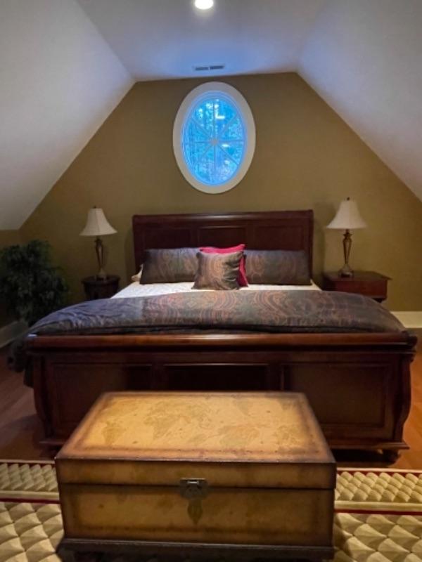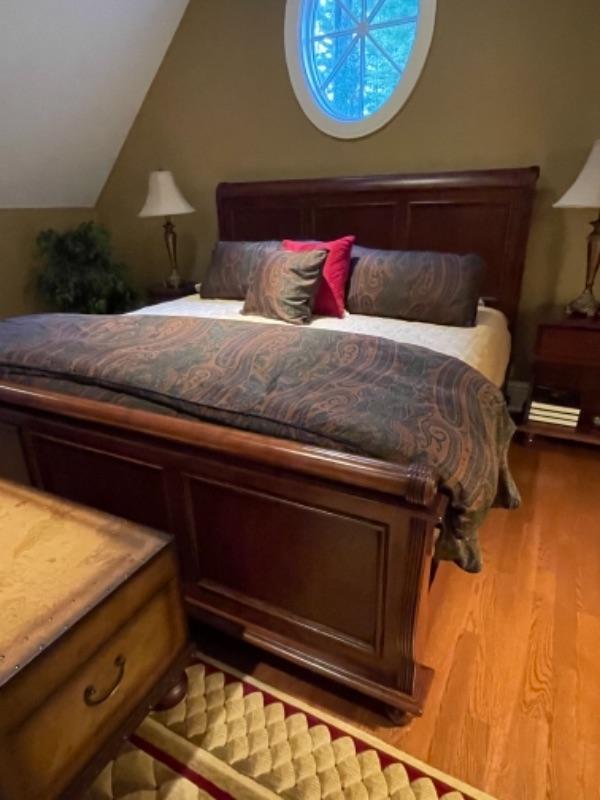 Beautiful brand new, never used sleigh king bed. Mattress is included in price, but does not need to be taken with bed.