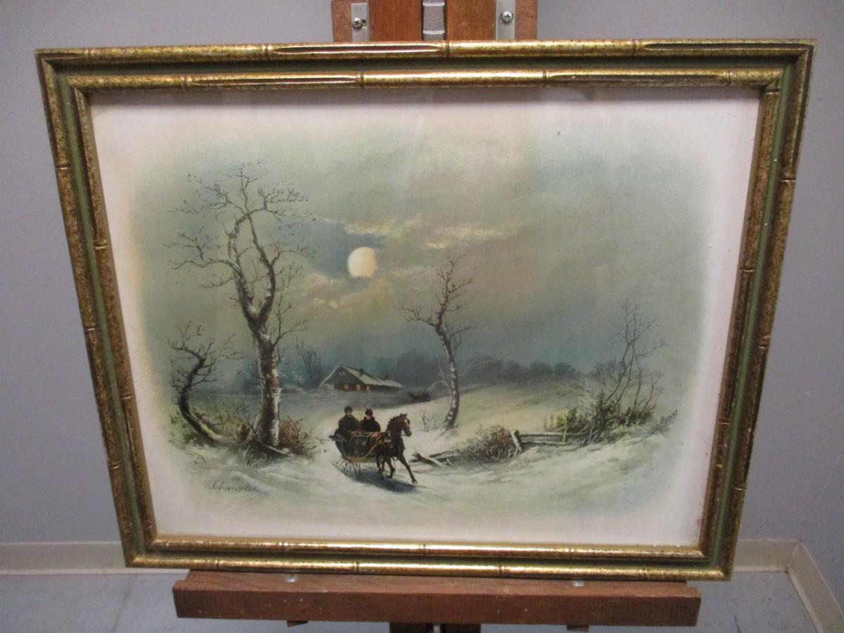 Sleighing By Moonlight Print By William Henry Chandler Approx 21 3/4" x 18"