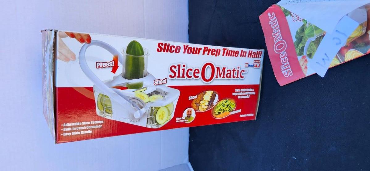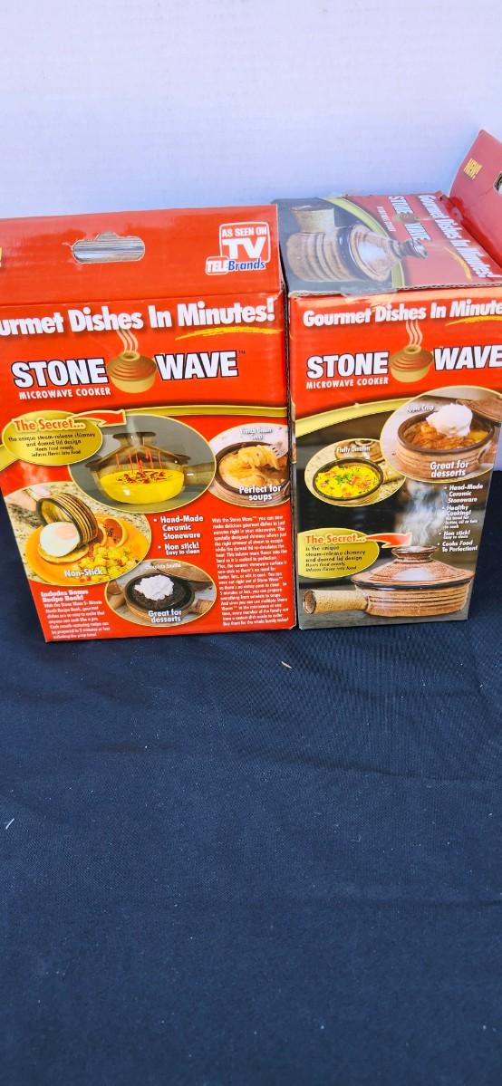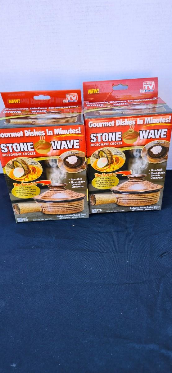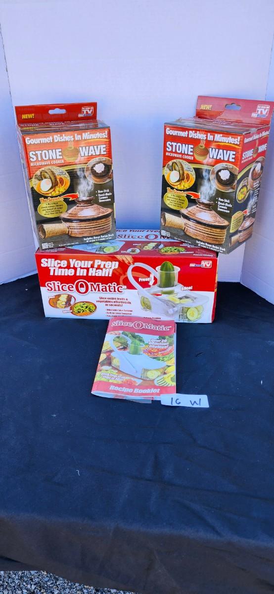 Slice-O-Matic food slicer and 2 Stone Wave Microwave Cooker Two Non-Stick Ceramic Stoneware Baking Pan