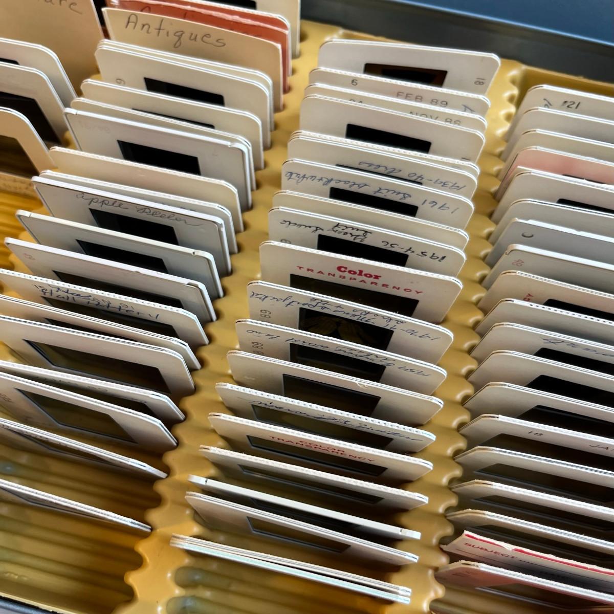 This is a cool two layer tray container. The slides are all stock photos of antiques!