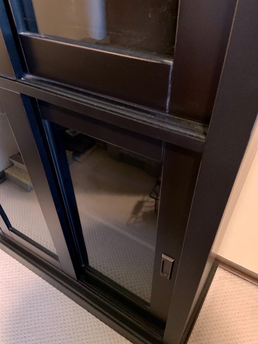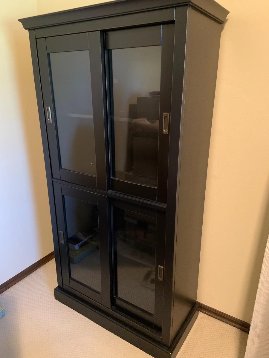 Glass front sliding doors, Measures 34"W x 15.5 D x 64 H