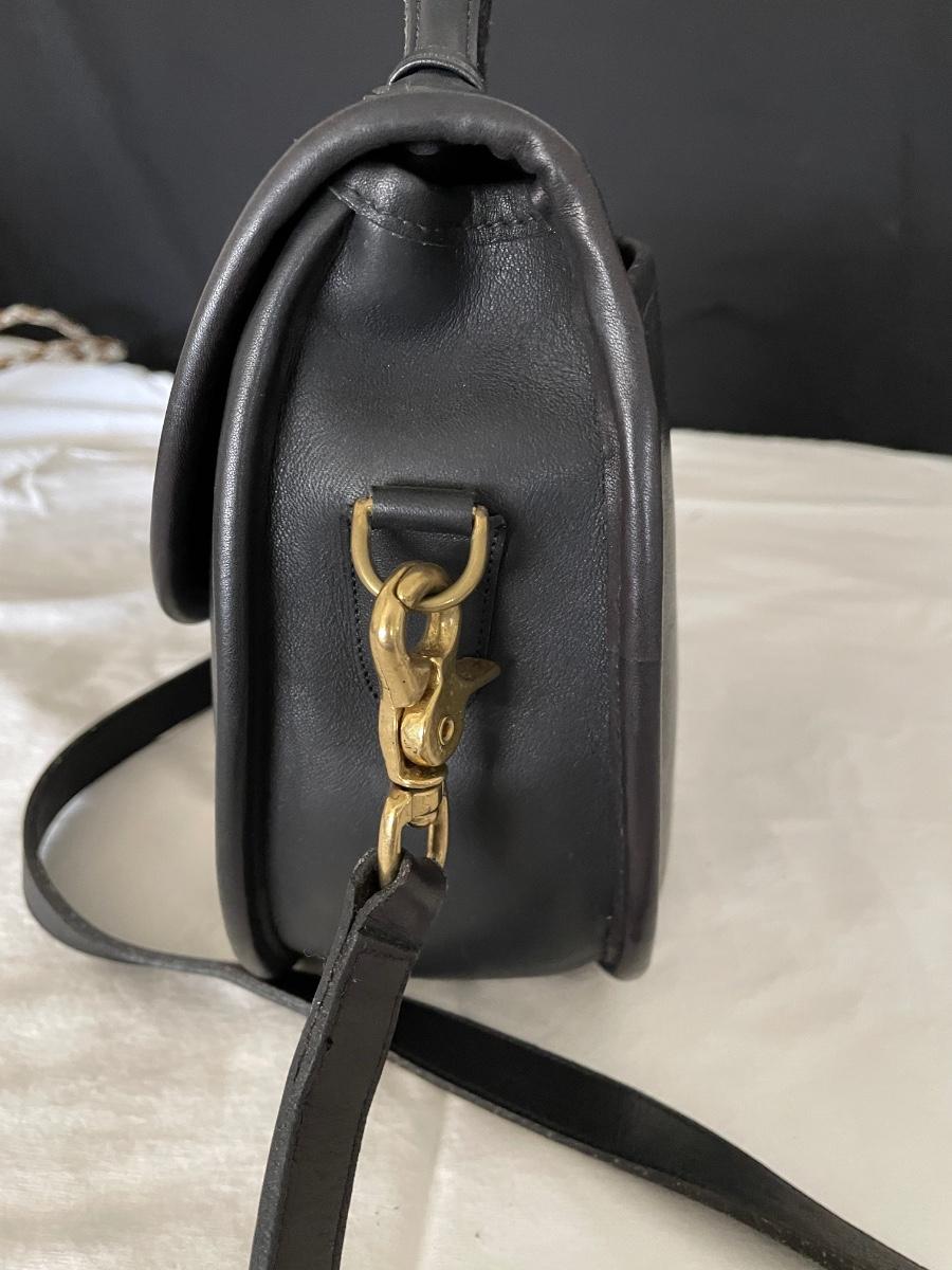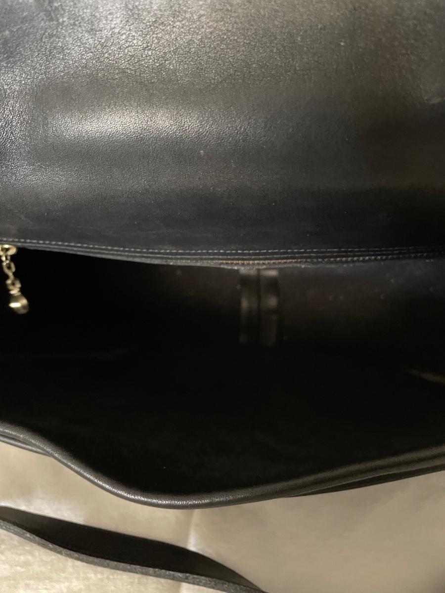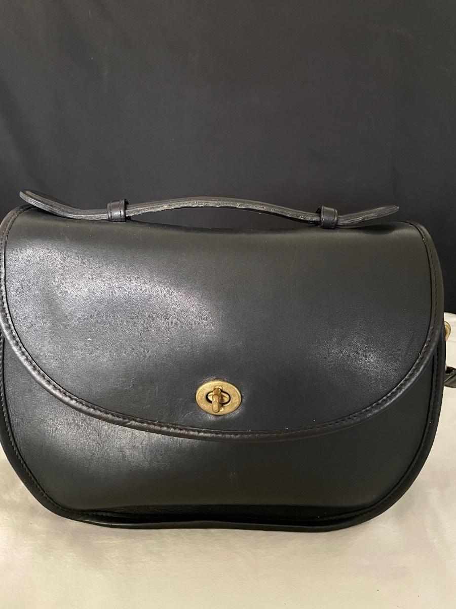 BLACK SLIGHTLY USED SHOULDER OR HAND PURSE. IN GOOD CONDITION WITH BLACK INTERIOR.