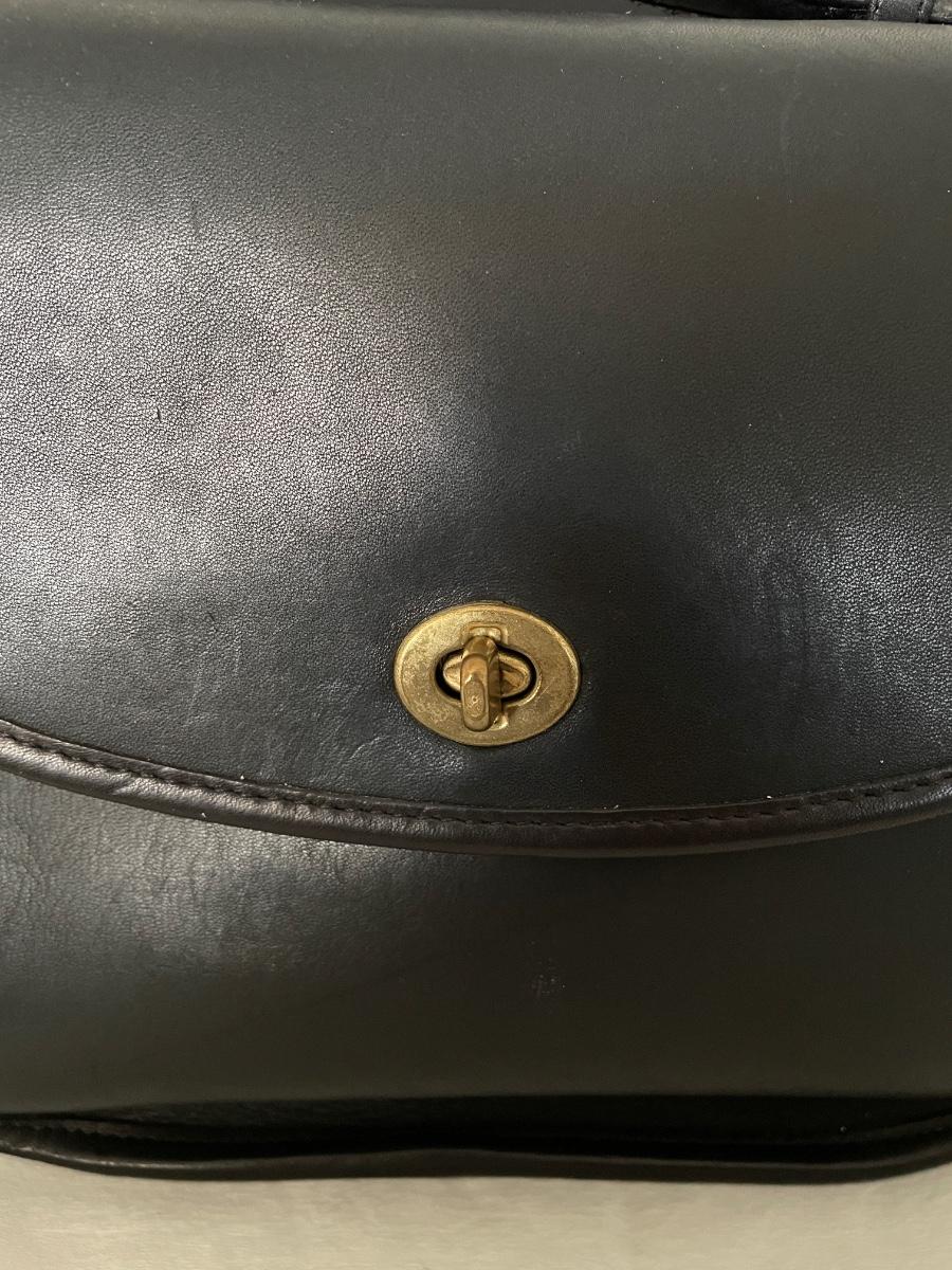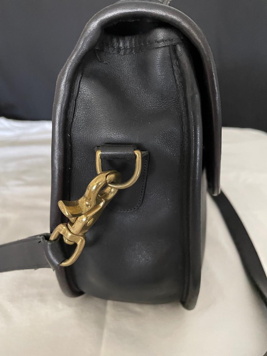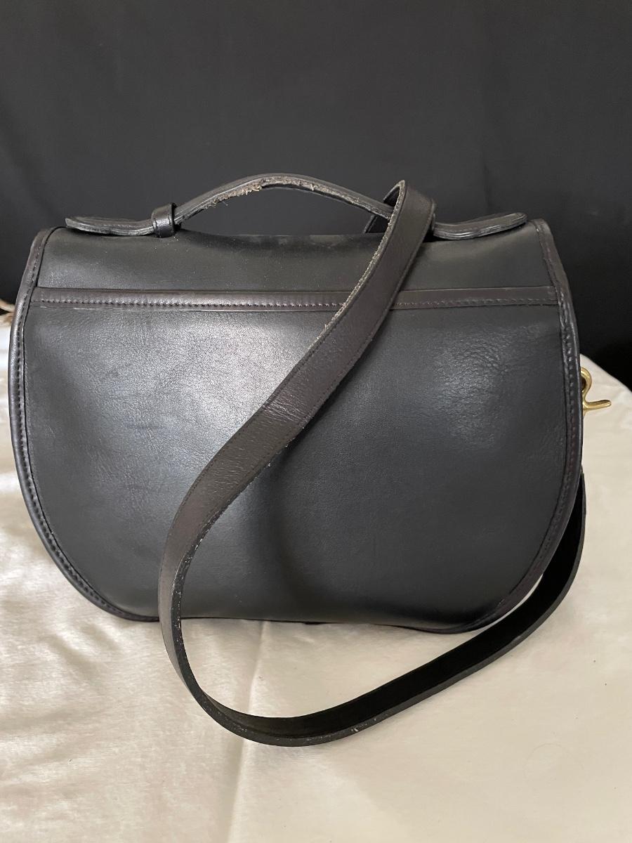 BLACK SLIGHTLY USED SHOULDER OR HAND PURSE. IN GOOD CONDITION WITH BLACK INTERIOR.