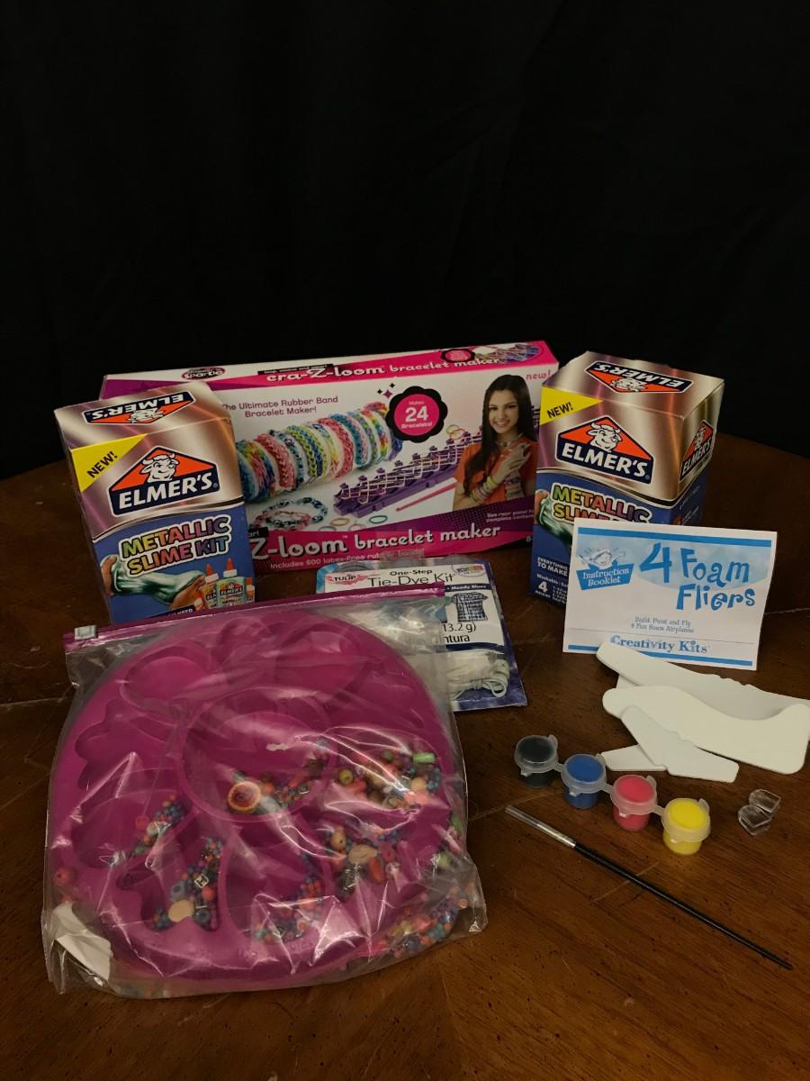 kids crafts: slime kit, bracelet maker, paint with brush, beading making materials;