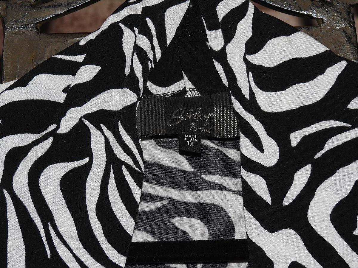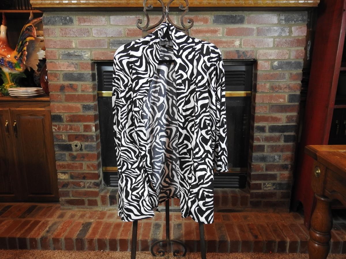 Slinky brand, light three-quarter length sleeve, zebra print shawl jacket. Size XL. Excellent used condition.