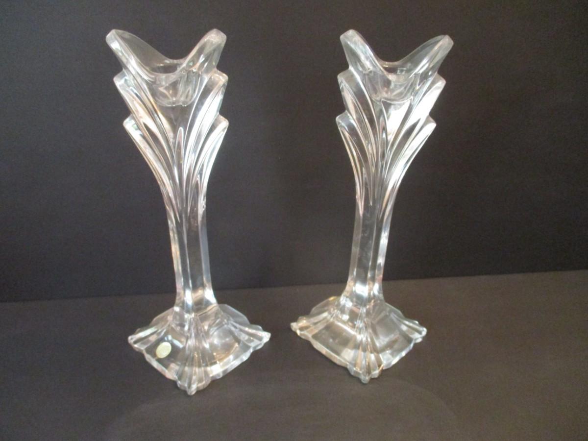 Slovakia Crystal Candlestick Holders 24% Lead Crystal 9.5” High