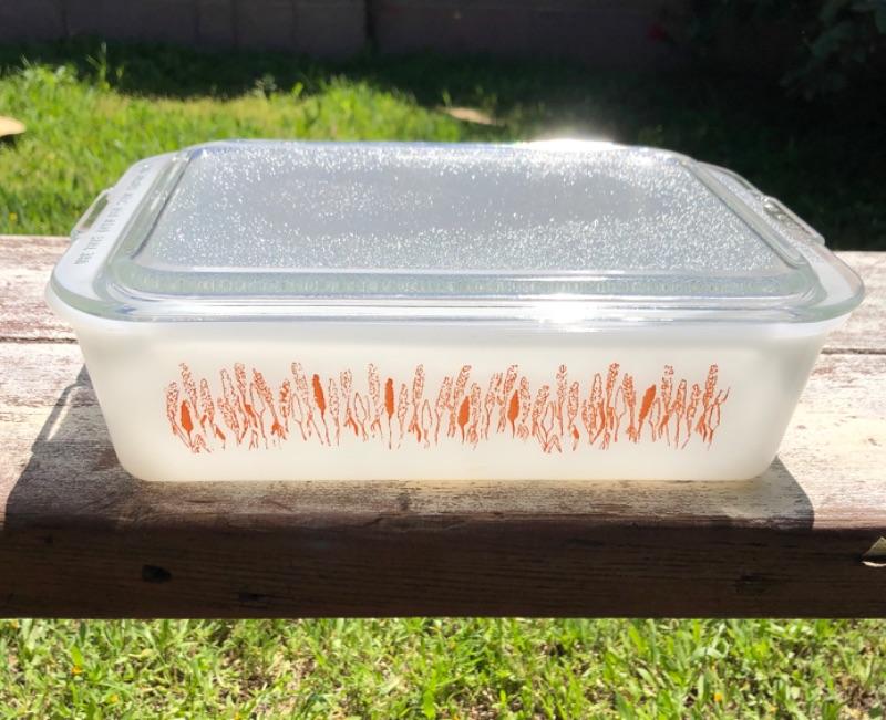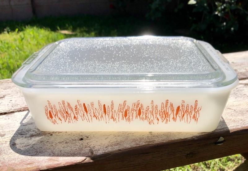 Vintage Baking Dish. White with wheat pattern