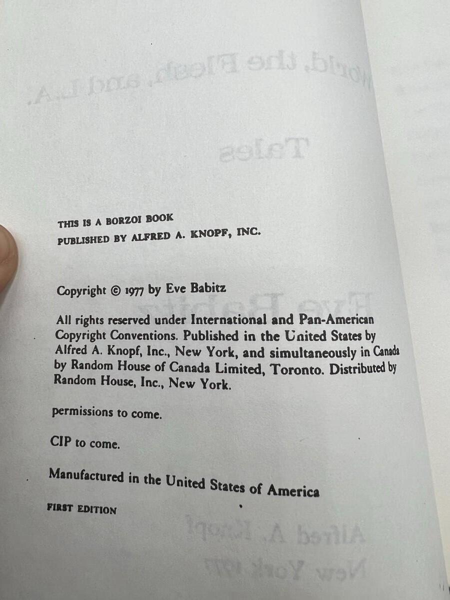 Slow Days, Fast Company by Eve Babitz Uncorrected Proof 1977