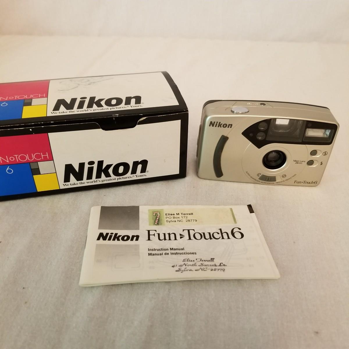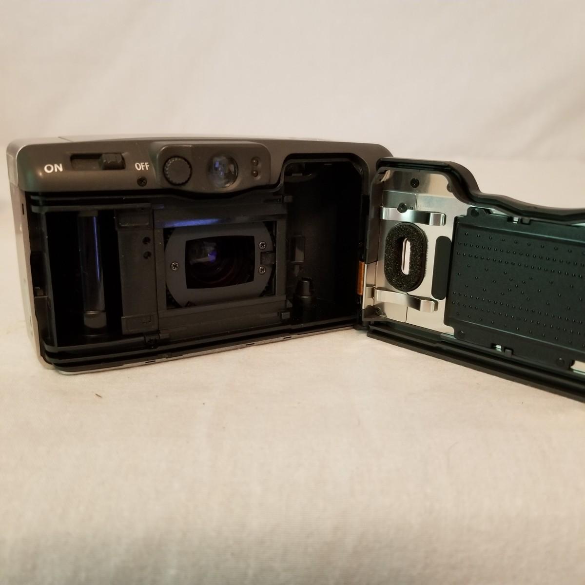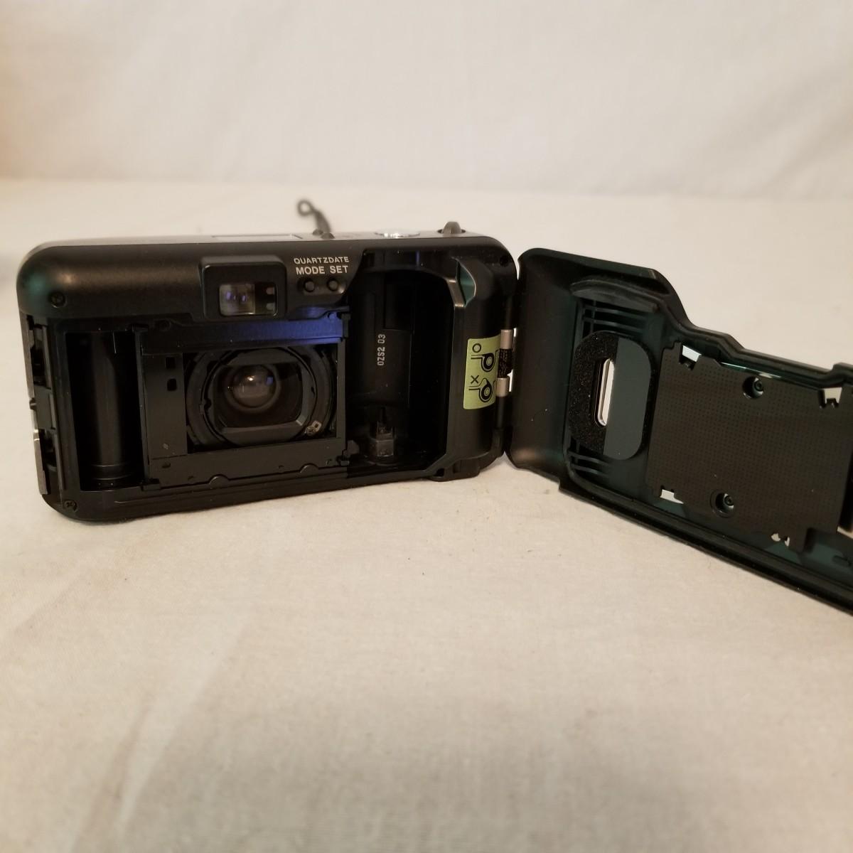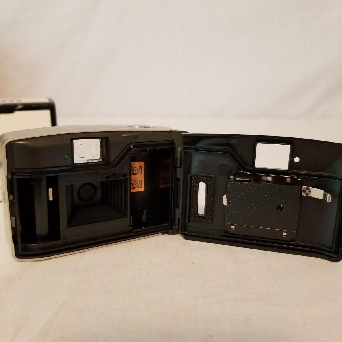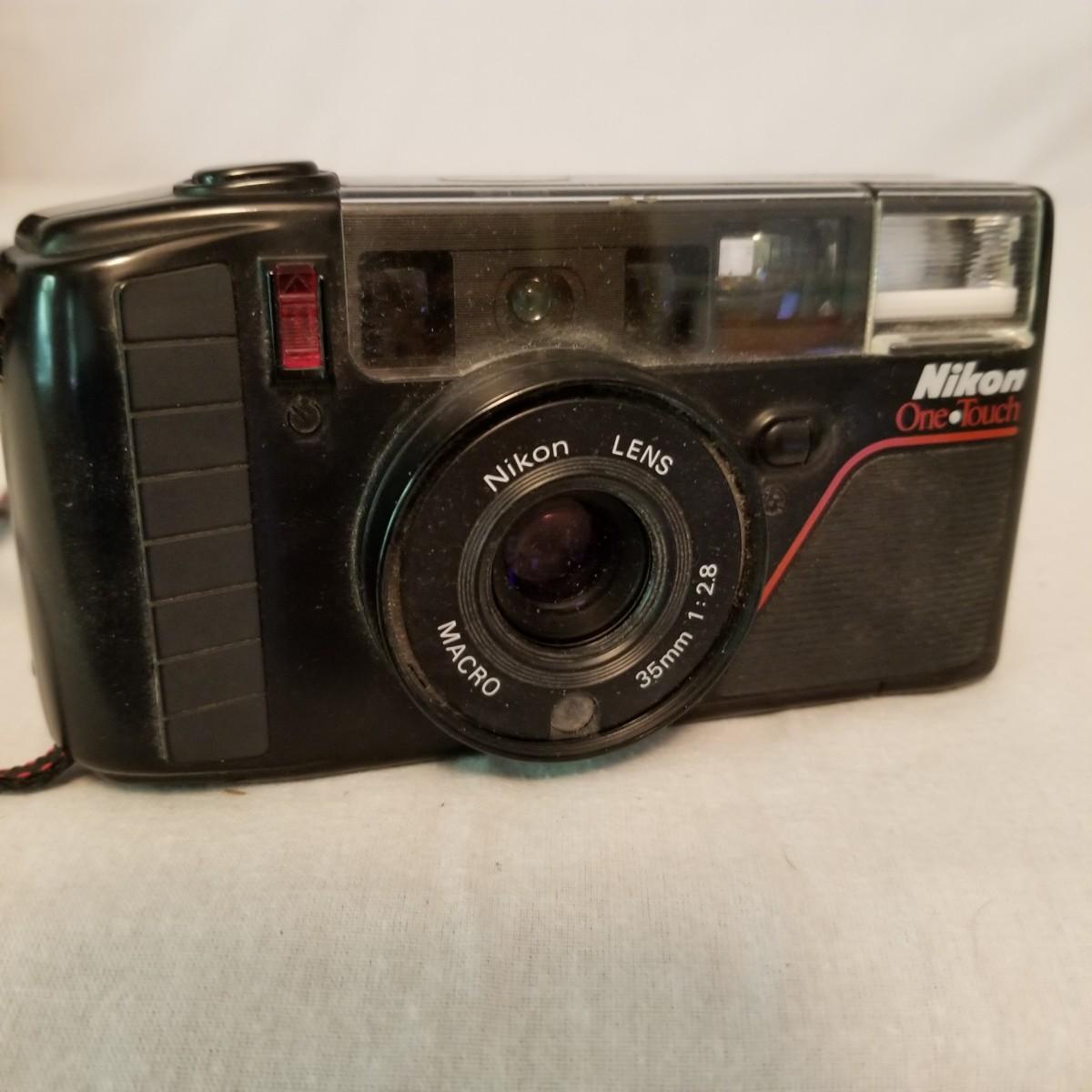 Five early point and shoot 35mm cameras by Nikon, Canon, Olympus. Most have original boxes and manuals. Also includes three miscellaneous bags for storage and transport. All items untested, but in good condition. See photos for details. Shipping available.