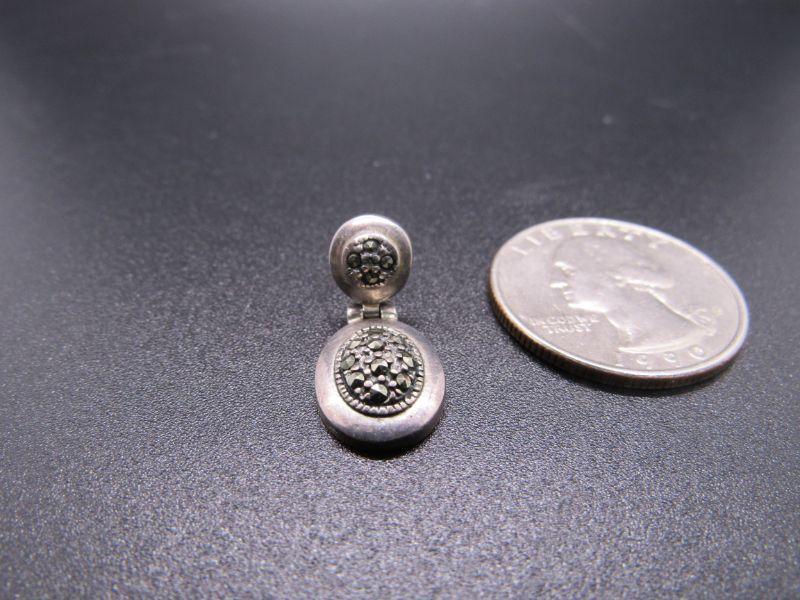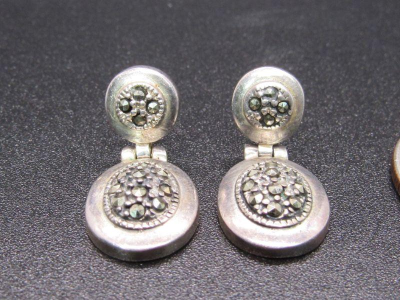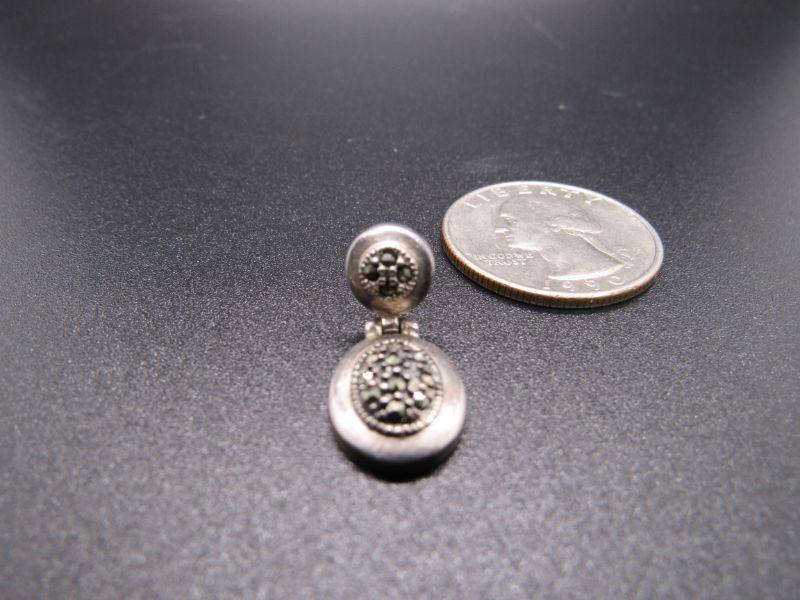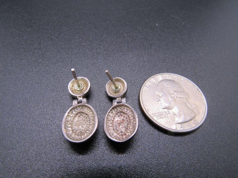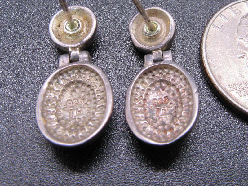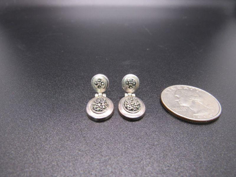 Pair of small sterling silver 7 hematite dangle earrings. For pierced ears, but missing the backs. About 7/8" length. Stamped on the back. #020-05101