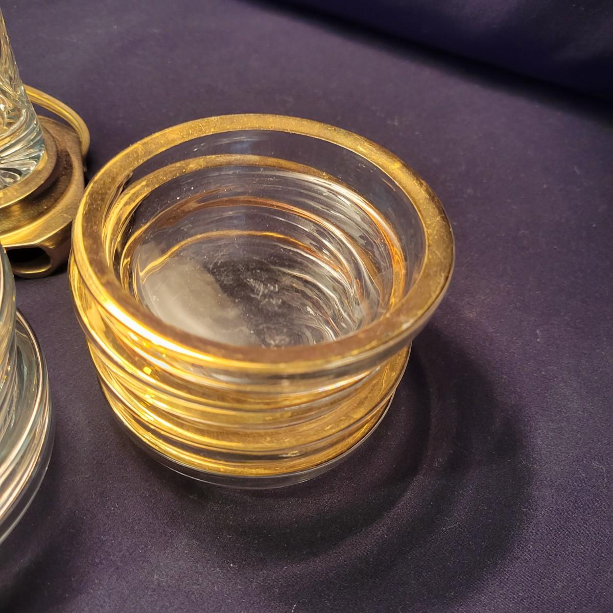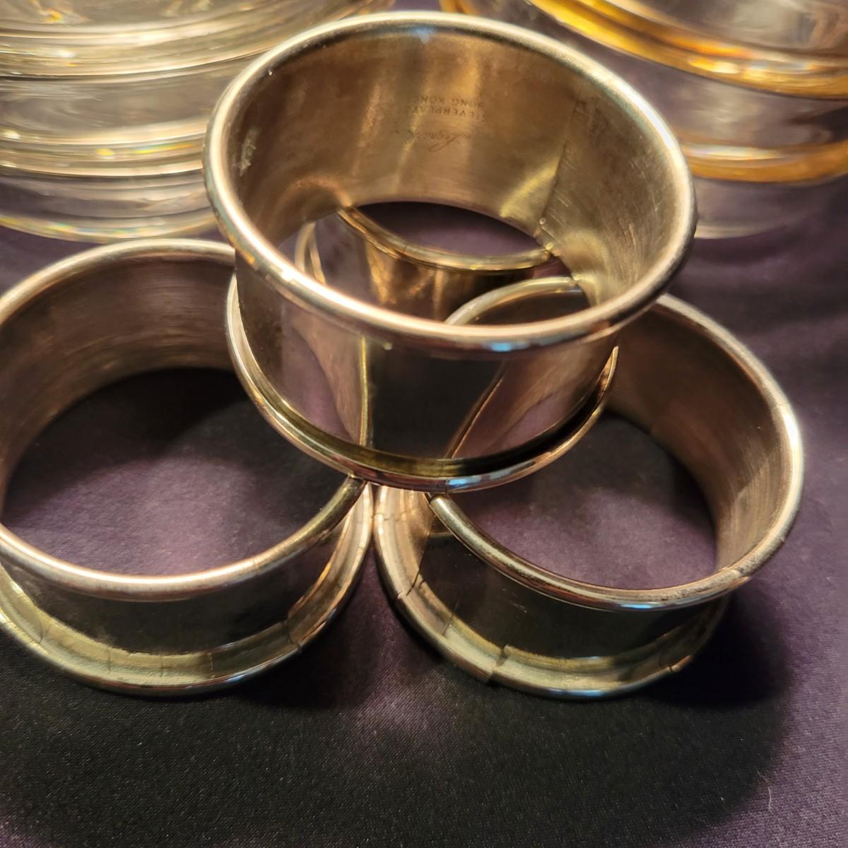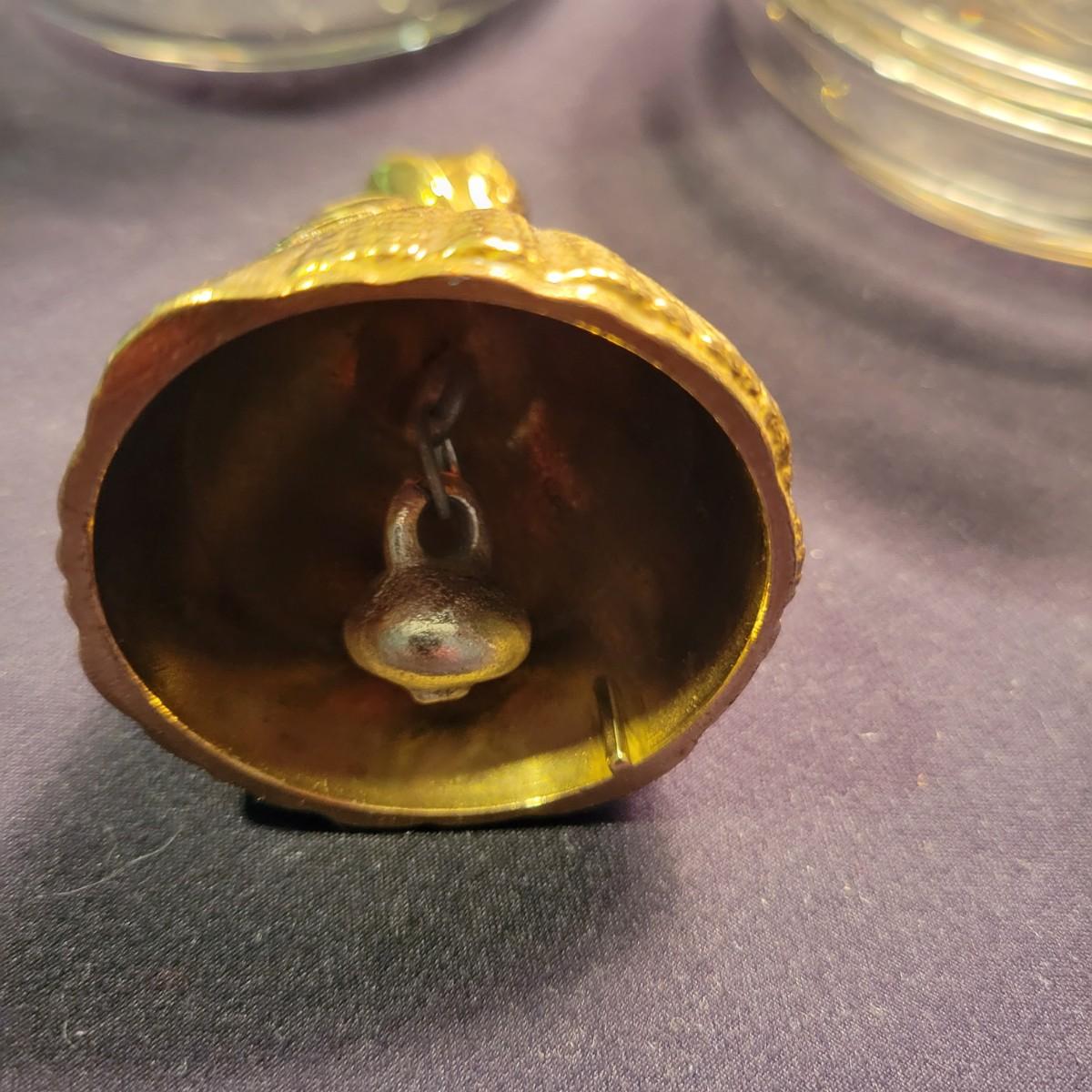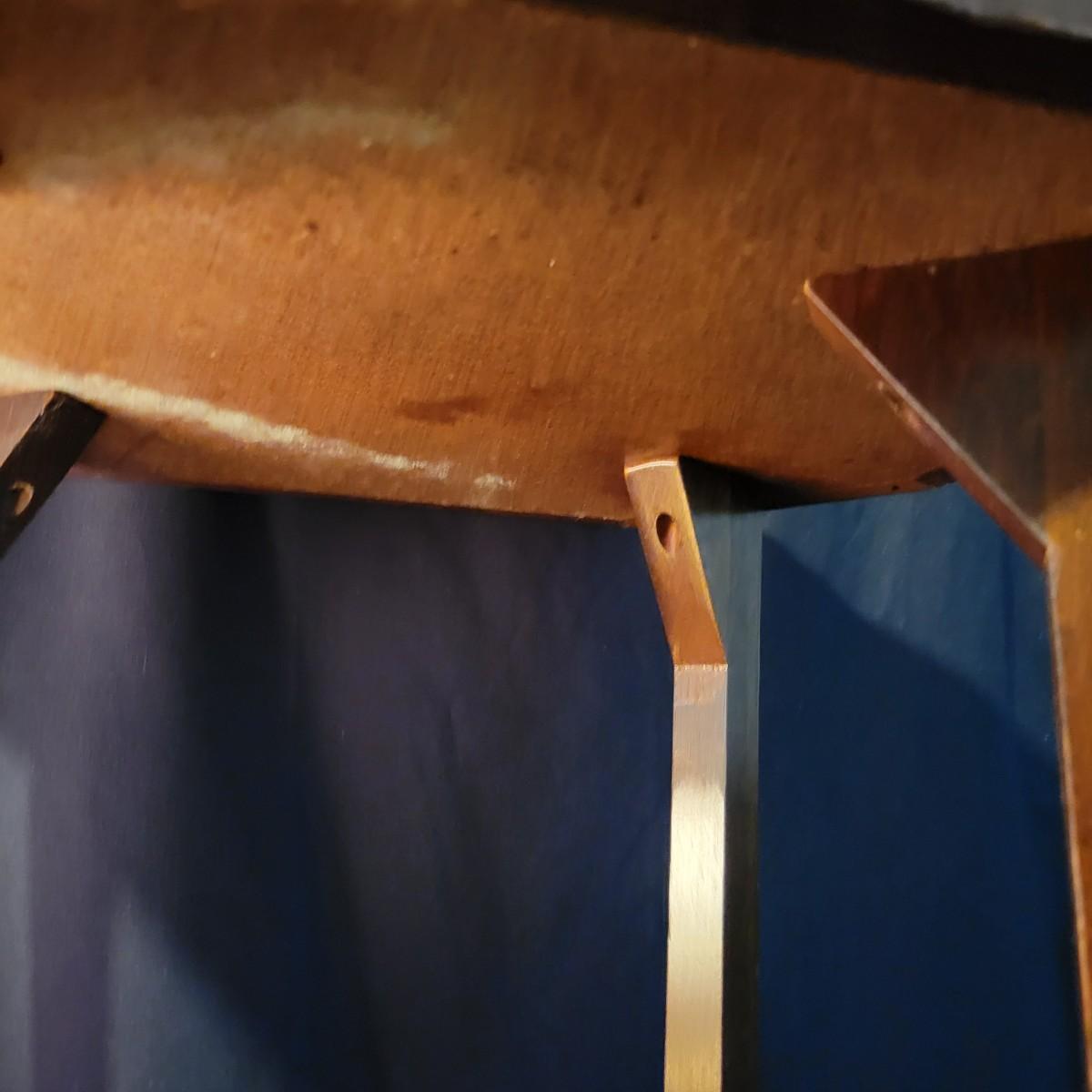 A small accent table with a removable tray in good condition with some scuffs and scratches. Wood surface under the tray is a little cloudy. See attached pictures for more detail. Also included is a small glass and metal table lamp in good condition, 8 glass coasters with silver edging, 4 glass coasters with golden edging, 4 silver plated napkin rings, and a small brass bell in the shape of a Victorian woman. Small accent table measures approximately 16" x 12" x 20.5". Shipping available