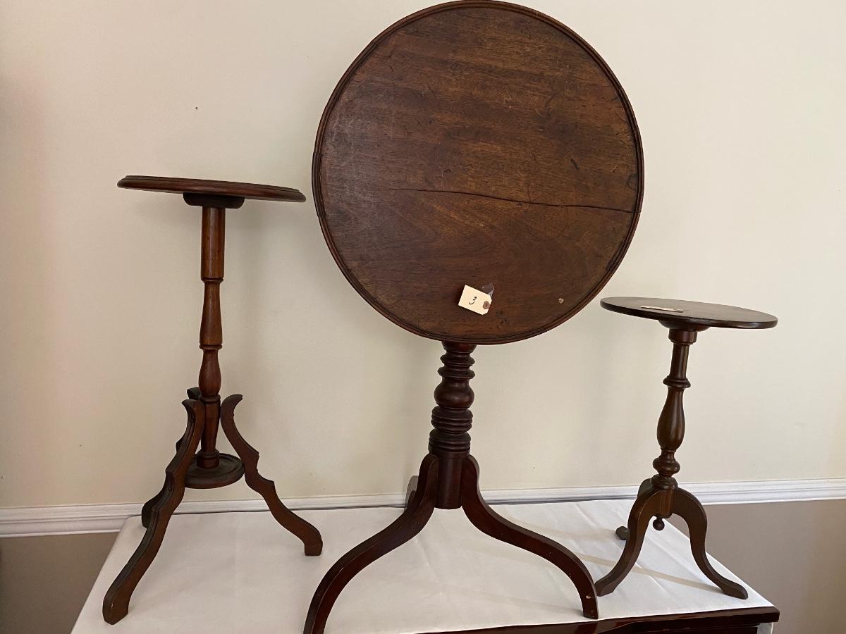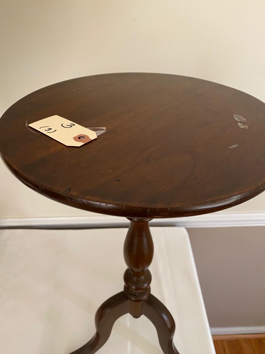 3 Small Accent Tables, Great Paint Projects, Tilt Top Accent Table has Crack Through Center