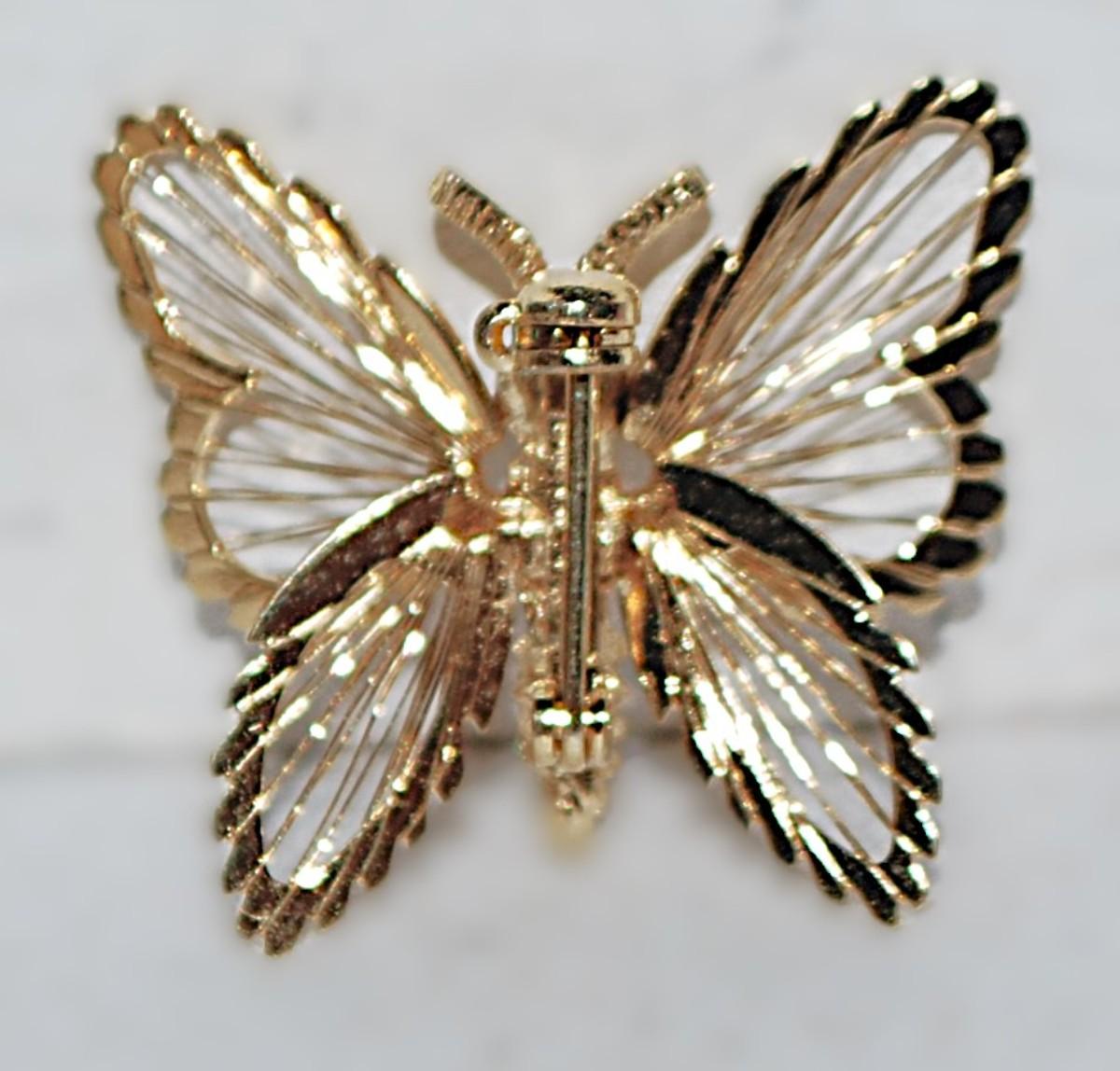 Small ALL GOLD Colored BUTTERFLY BROOCH (¾" x ¾") with Wire Art Leme' Wings on a Gold Tone Setting