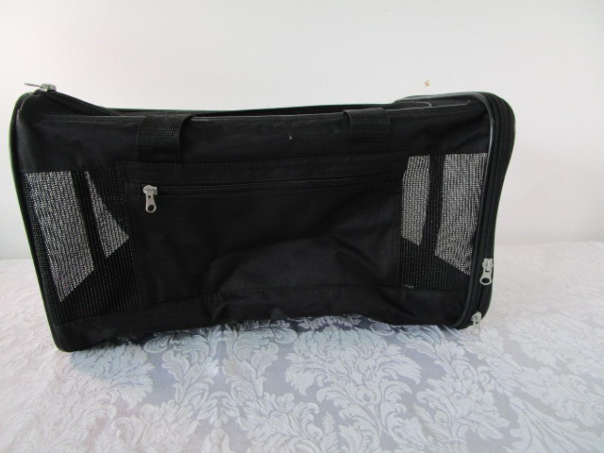 17-1/2" long x 10" tall x 11" wide, black with zipper pocket