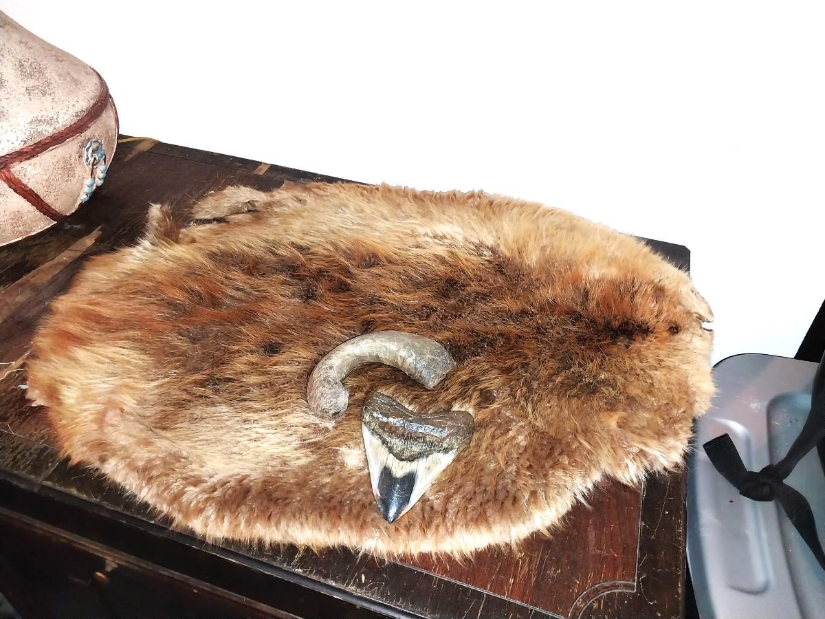 SMALL ANIMAL PELT AND TWO ARTIFACTS FROM BONE