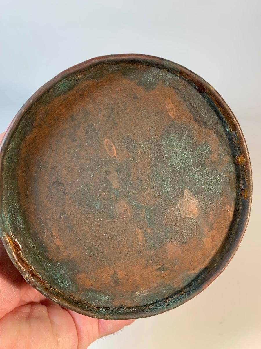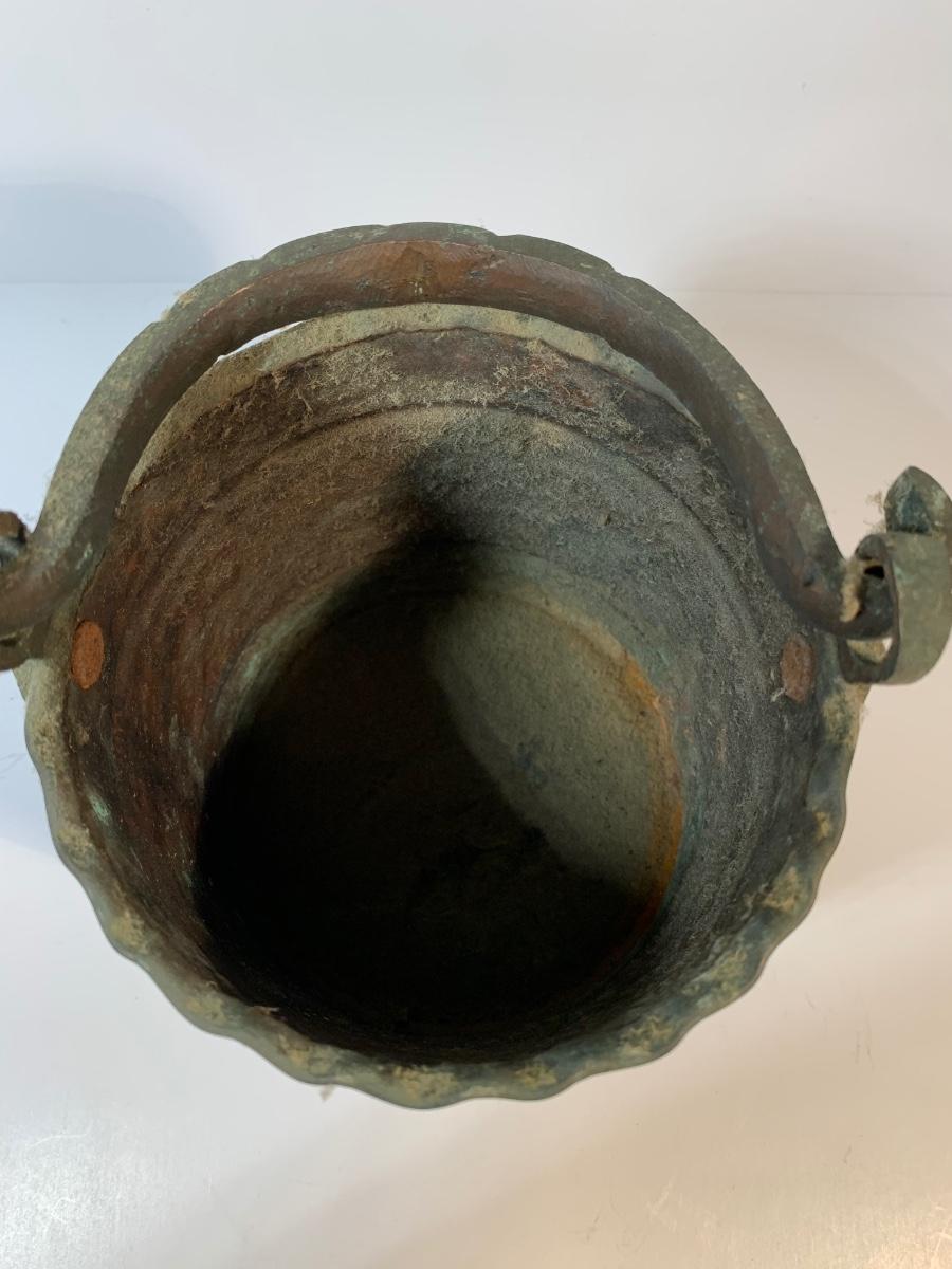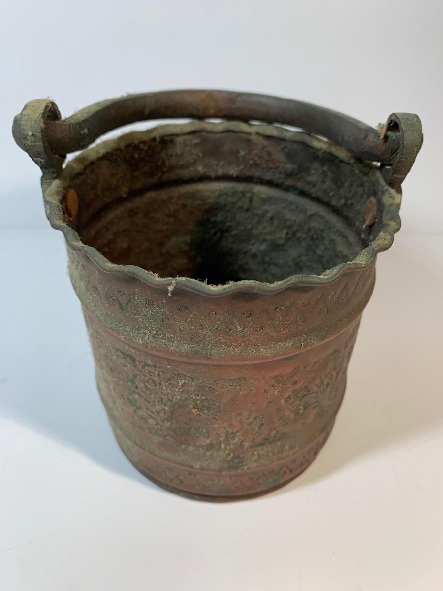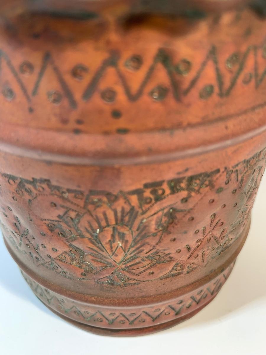 Copper body decorated with naive patterns and cast iron handles