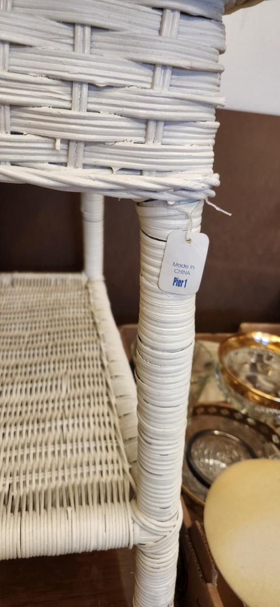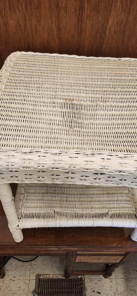 Notice the damage to the small chair and the top of the wicker