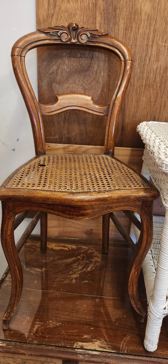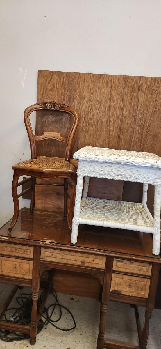 Small antique chair and wicker table