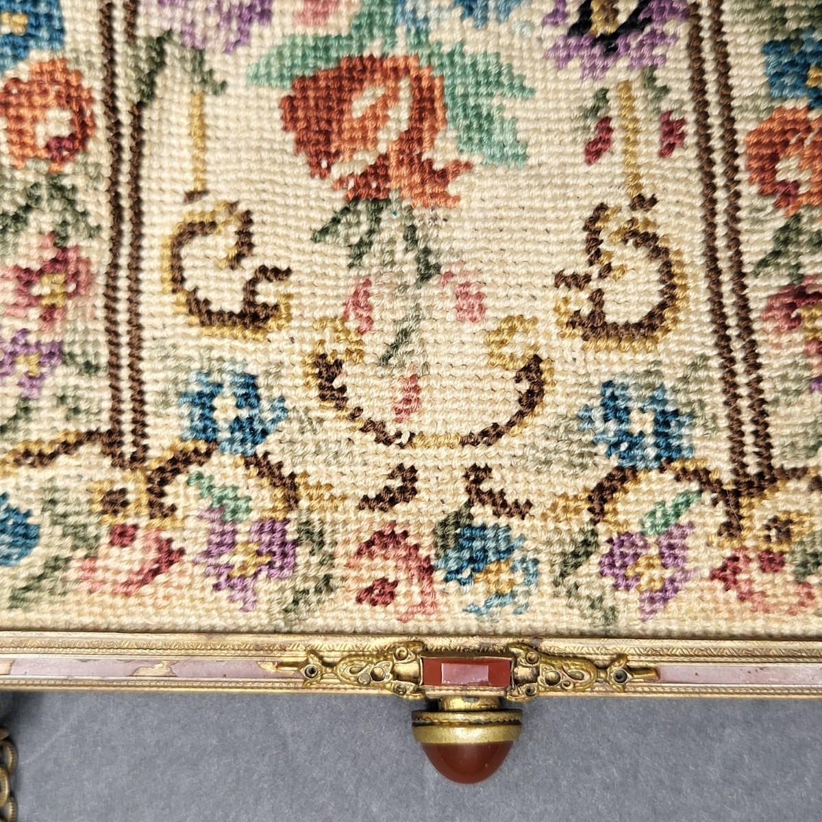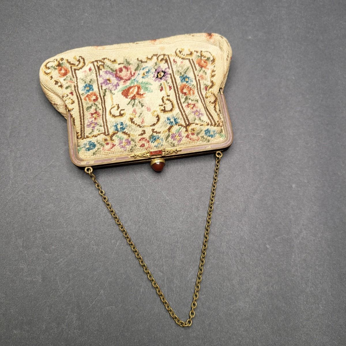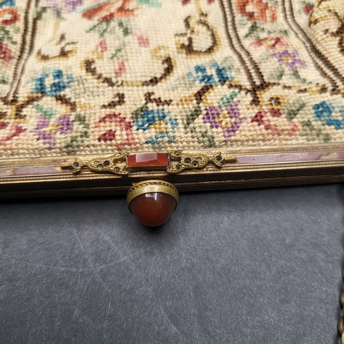 6" x 4" Antique petit point purse, occasional/evening bag. Carnelian colored glass clasp.
