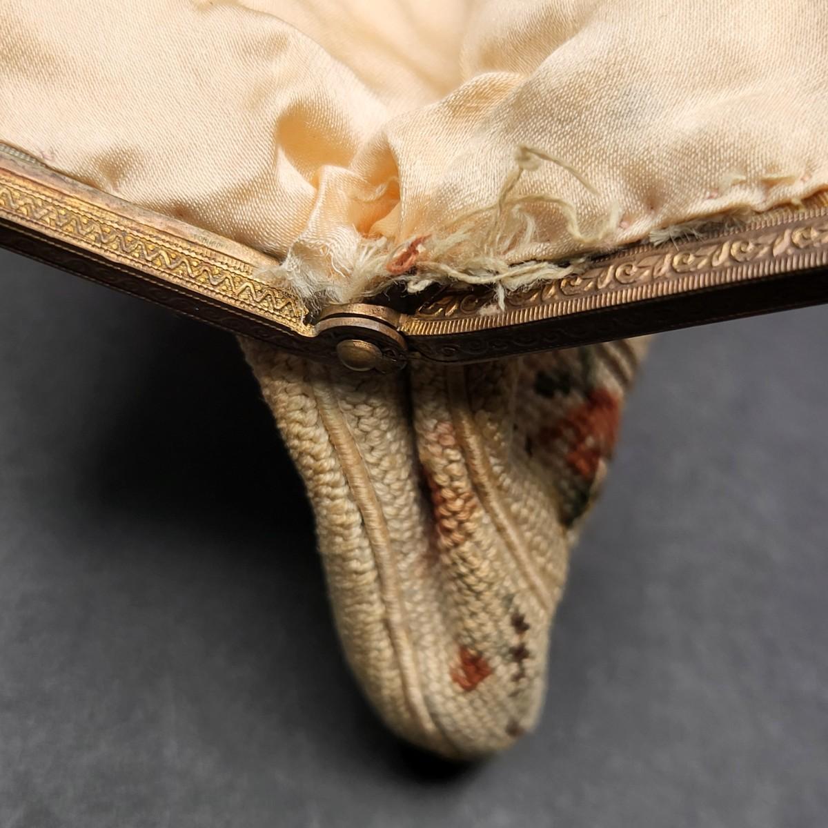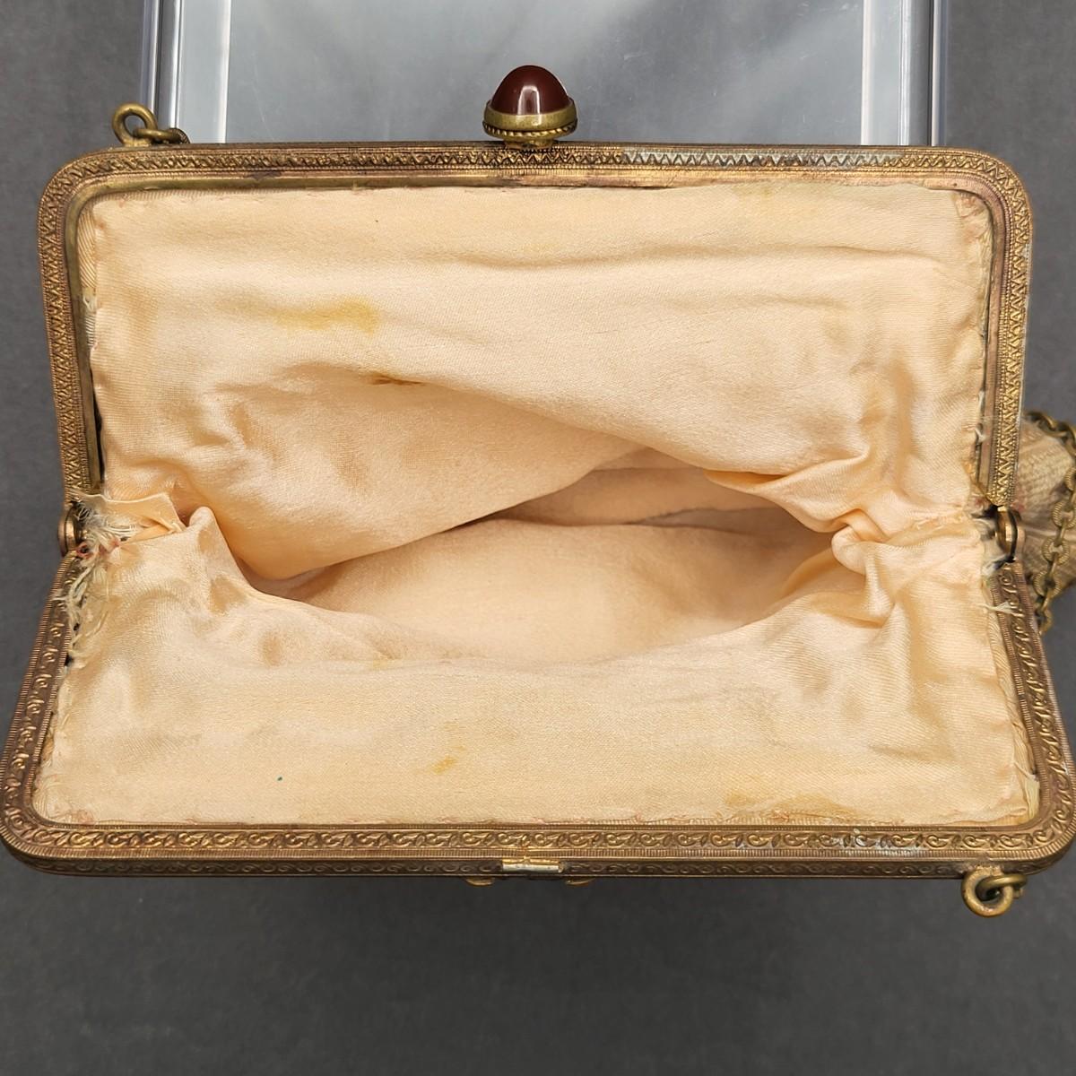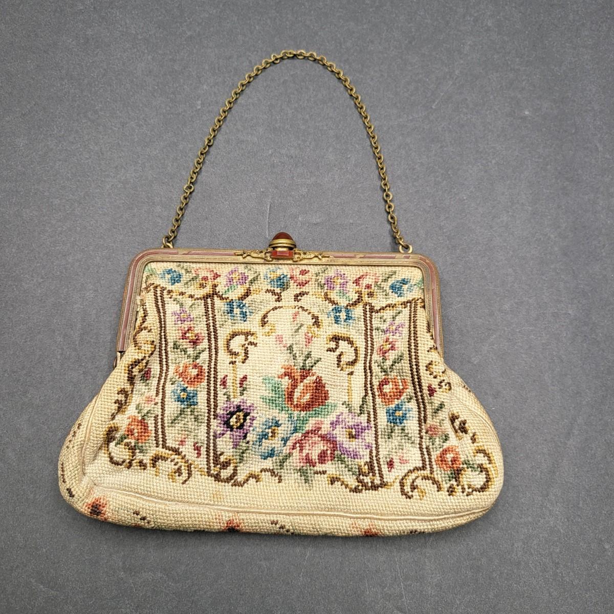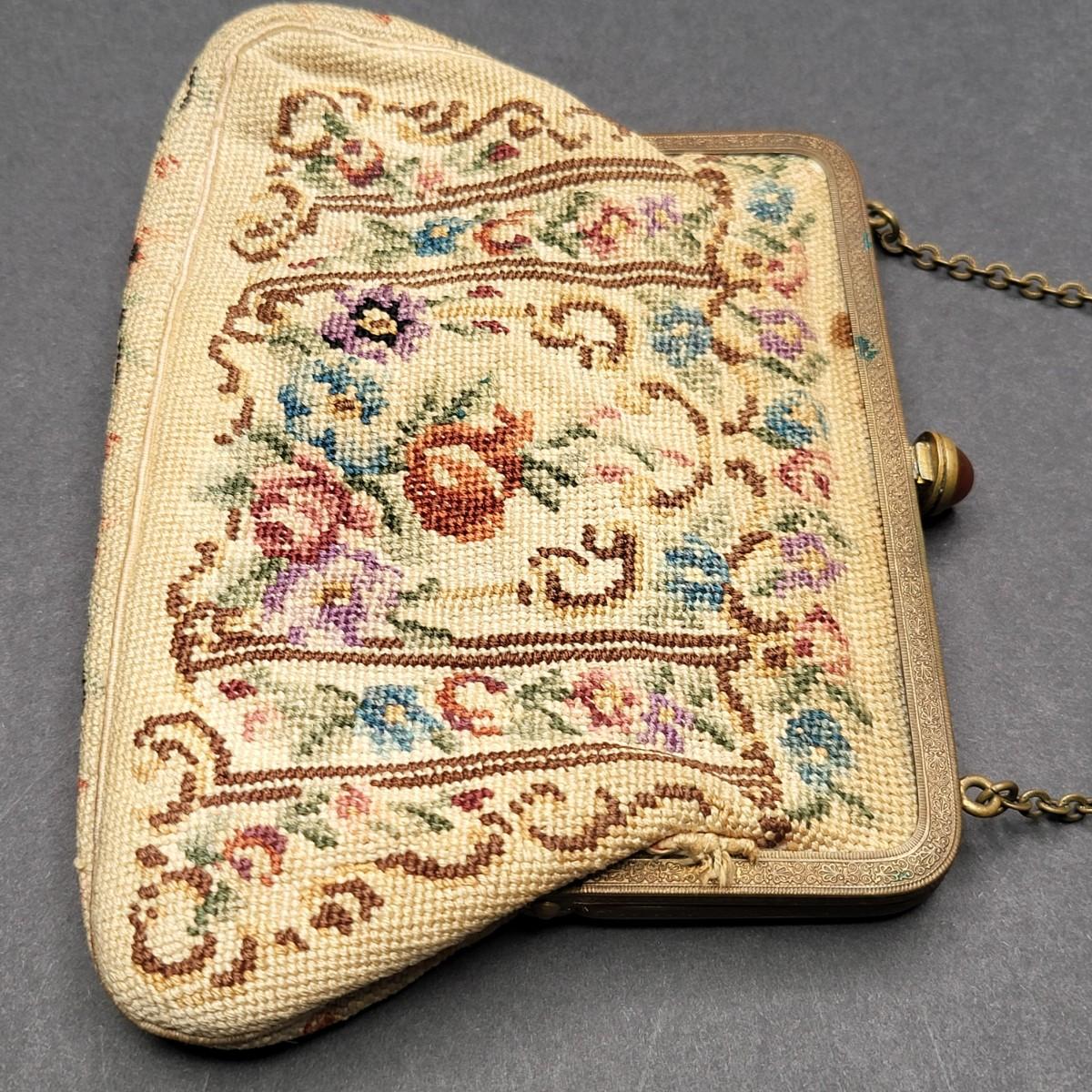 6" x 4" Antique petit point purse, occasional/evening bag. Carnelian colored glass clasp.