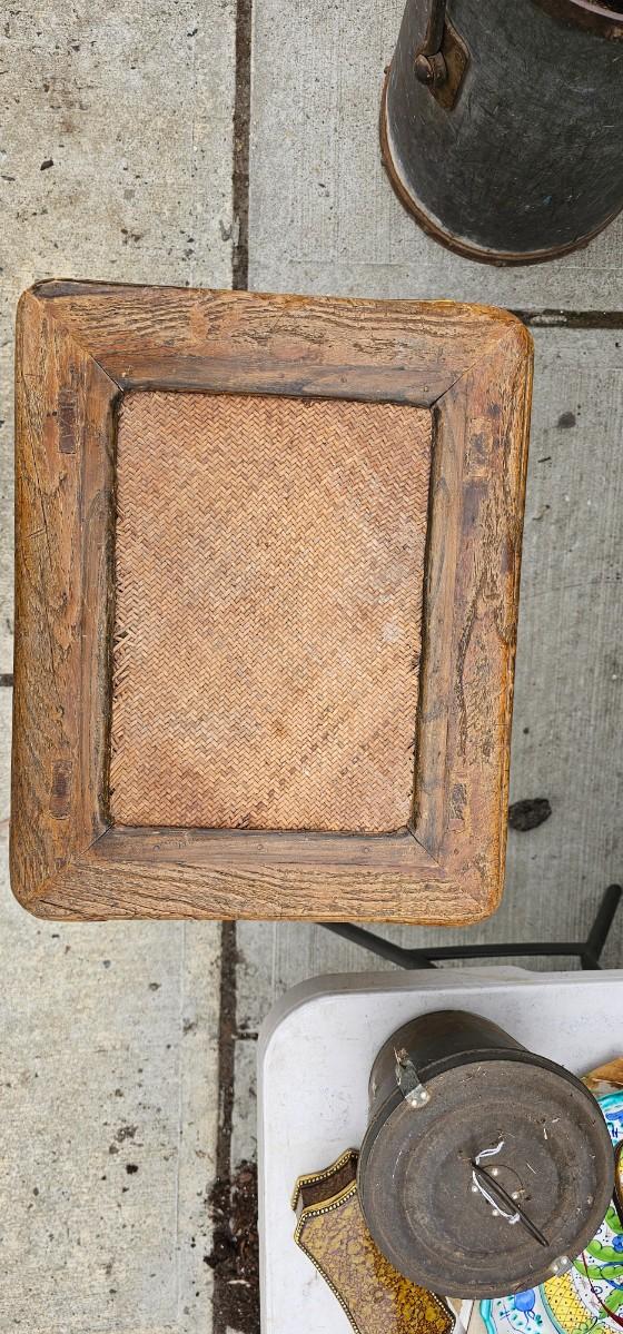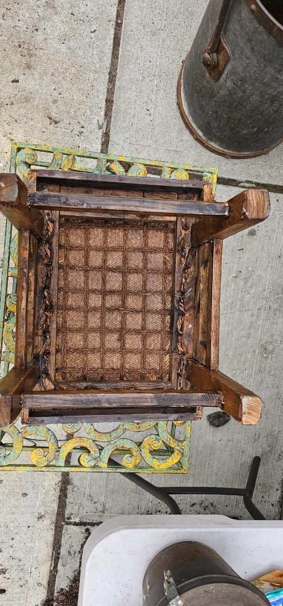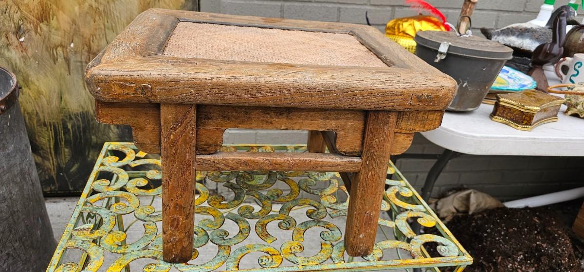 Small Antique Provincial Wood Rattan Tea Table Qing Dynasty