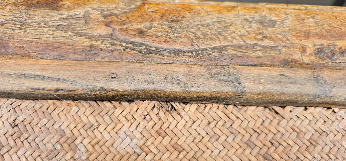 A charming antique Qing Dynasty Kang table in bleached wood serves versatile purposes, doubling as a low bench or tea table. Notable for its lovely shaped and carved apron, this low Chinese table features elegantly curved legs, often referred to as "chow legs." Explore the charm of this historic piece that seamlessly combines functionality with traditional design, making it a distinctive addition to any space.