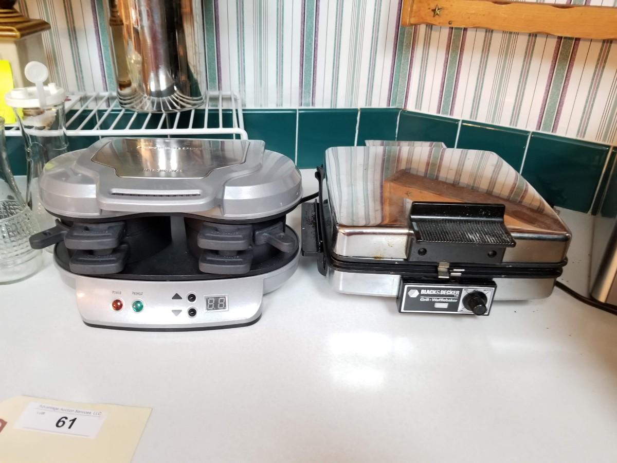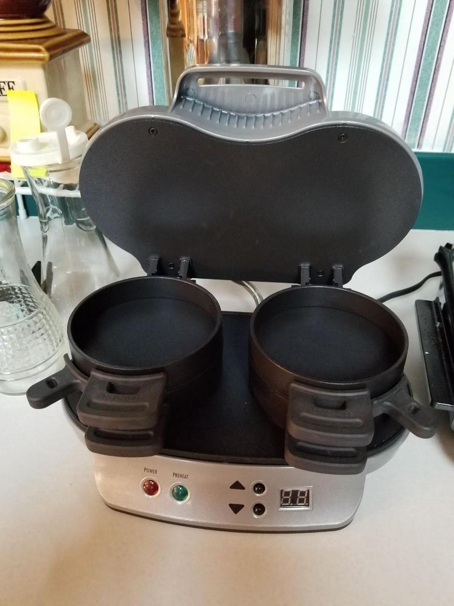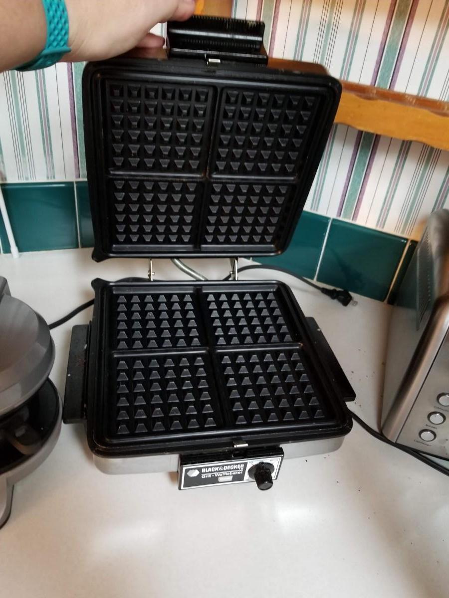 Breakfast sandwich maker (Hamilton Beech ST30) and a waffle maker