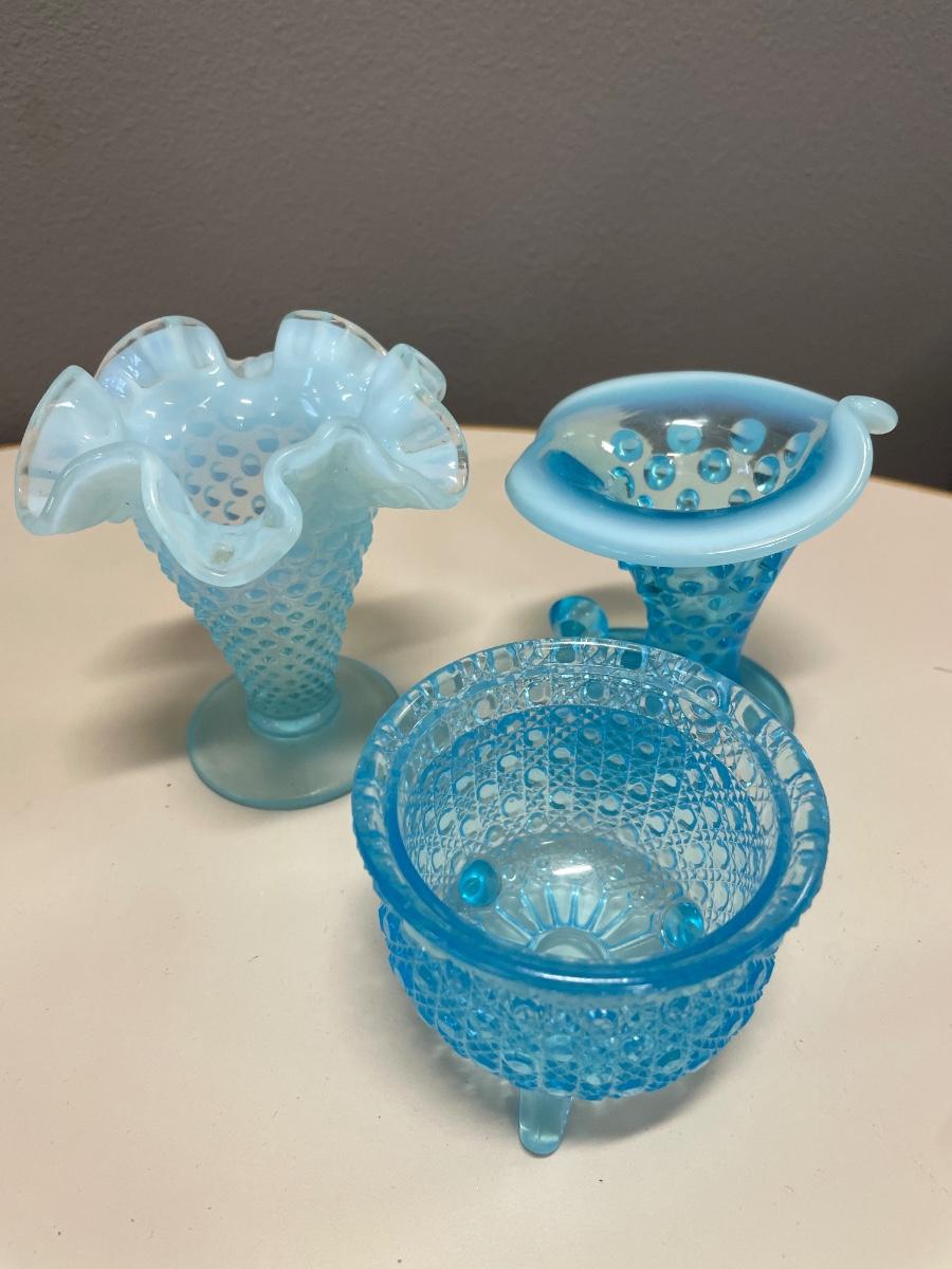 Small aqua glass items