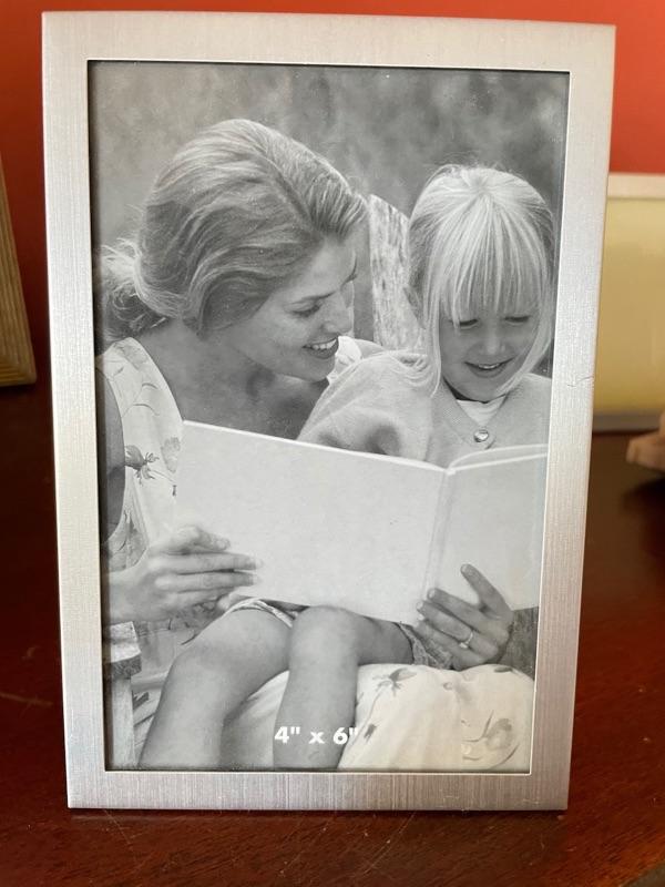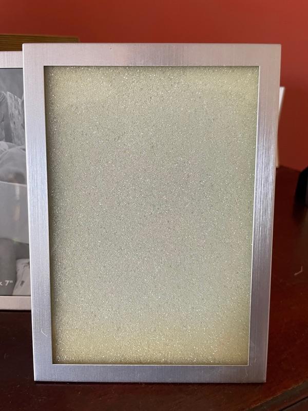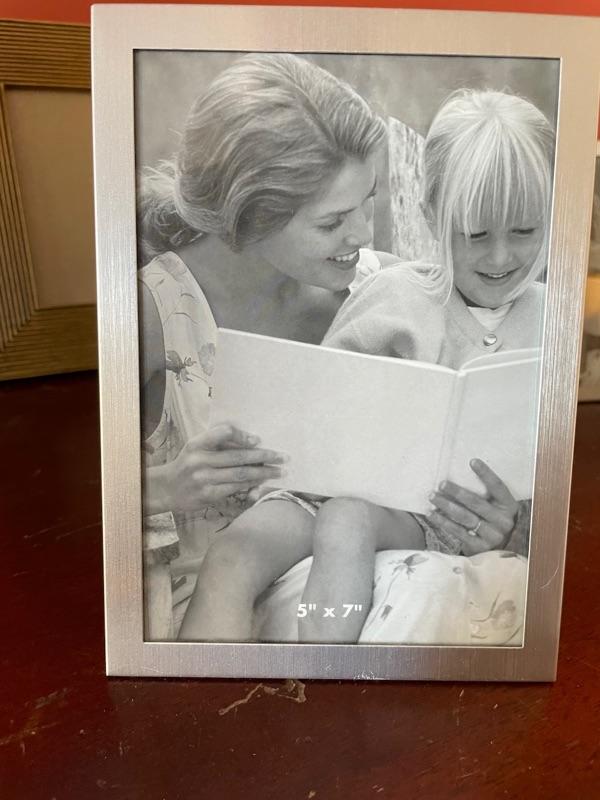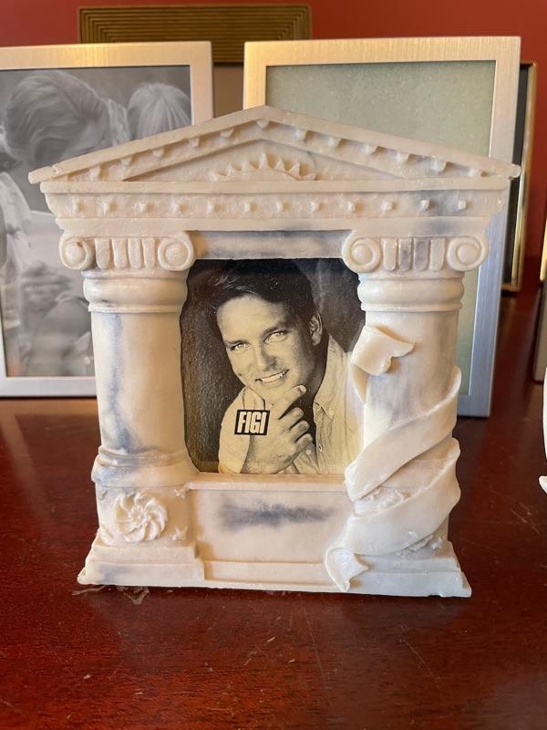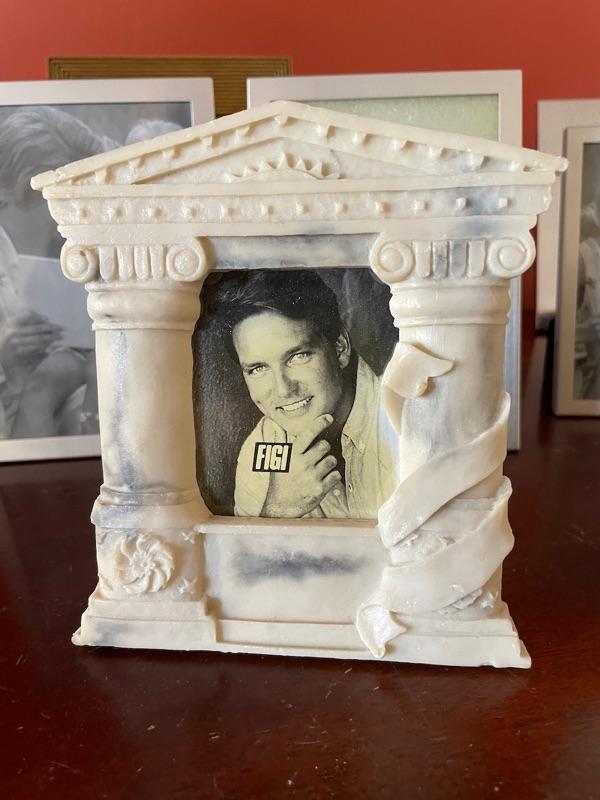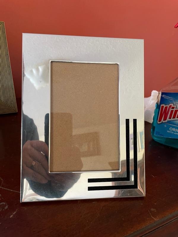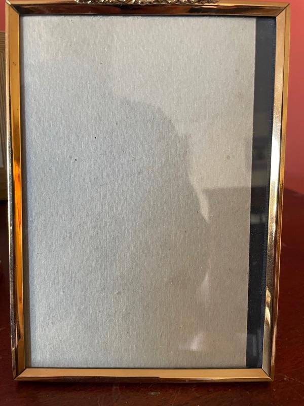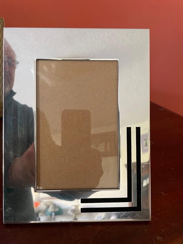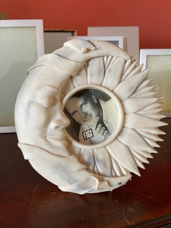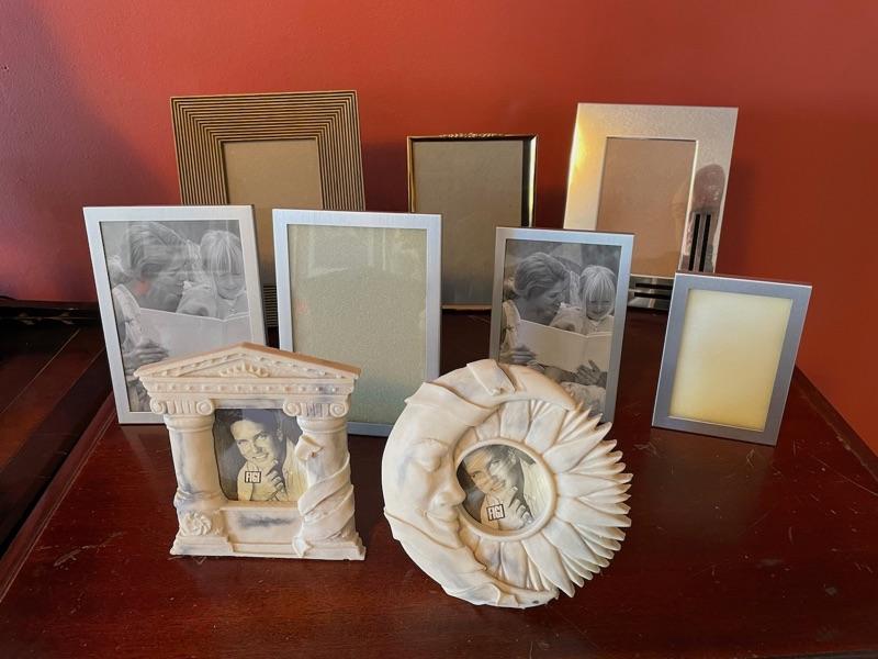 11 small frames, including a crescent moon, sun, greek temple, many simple silver frames.