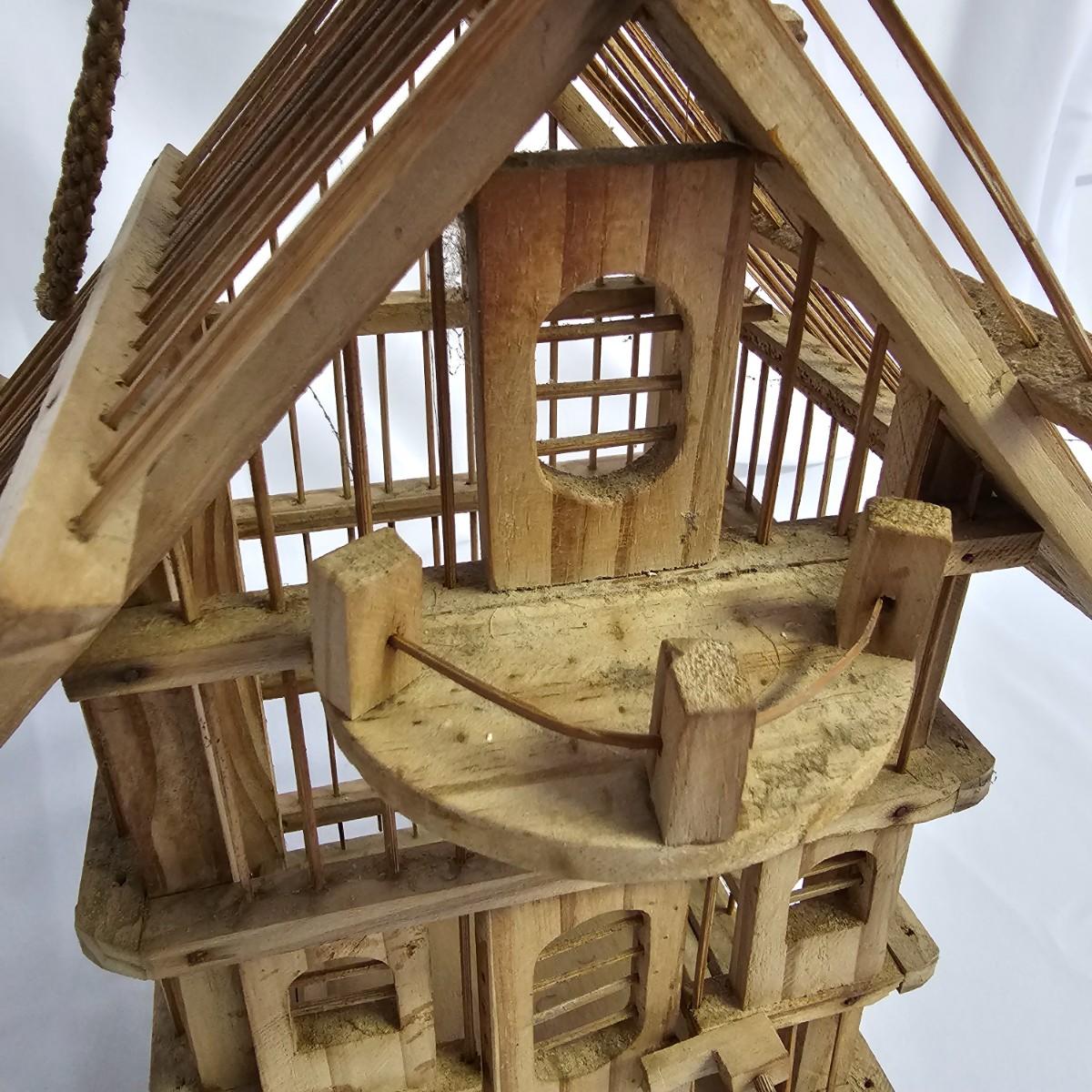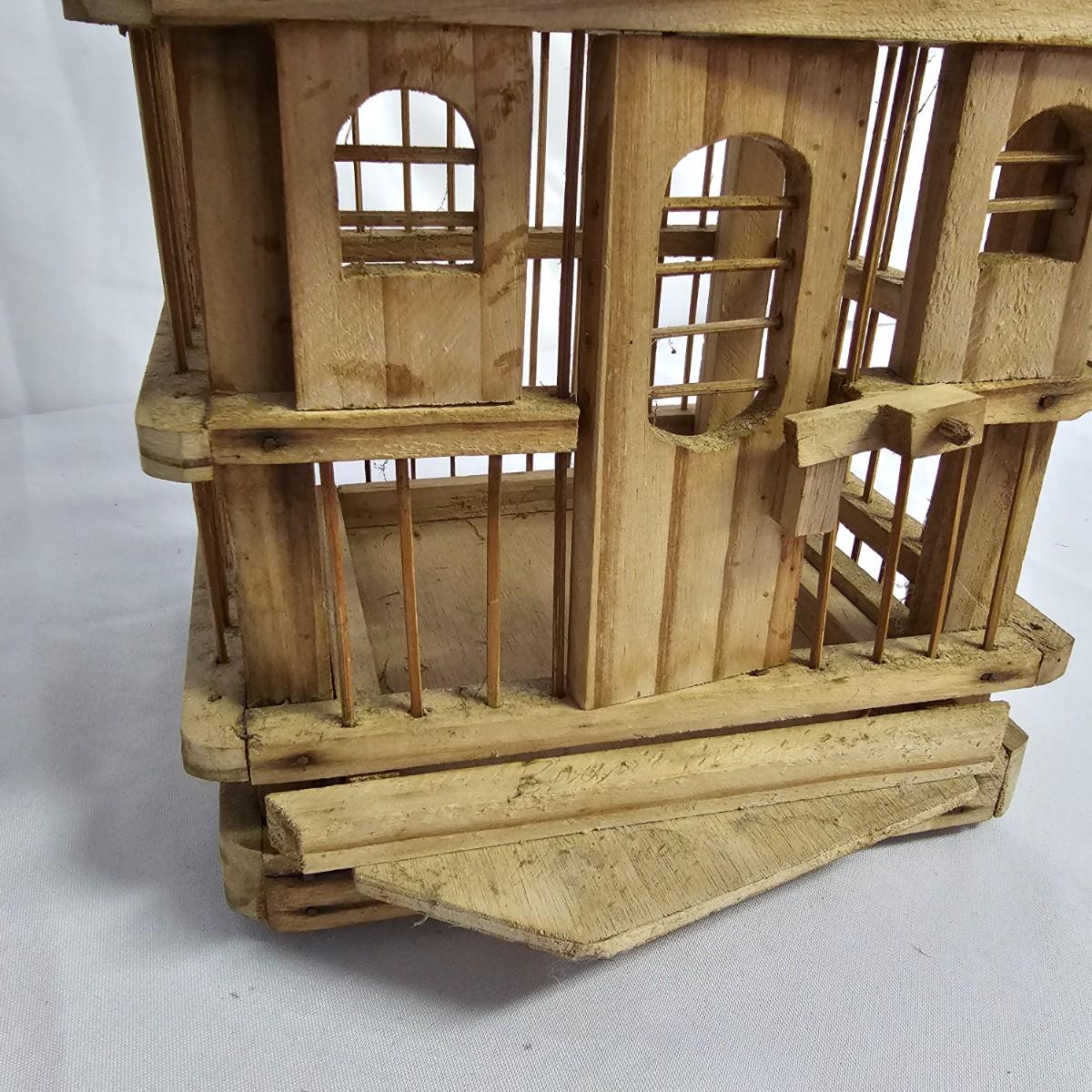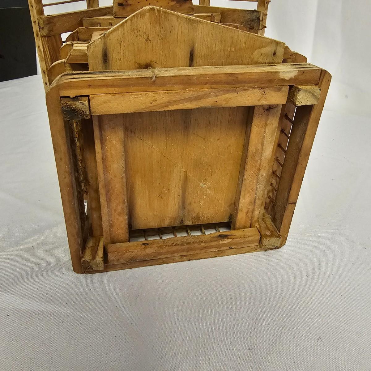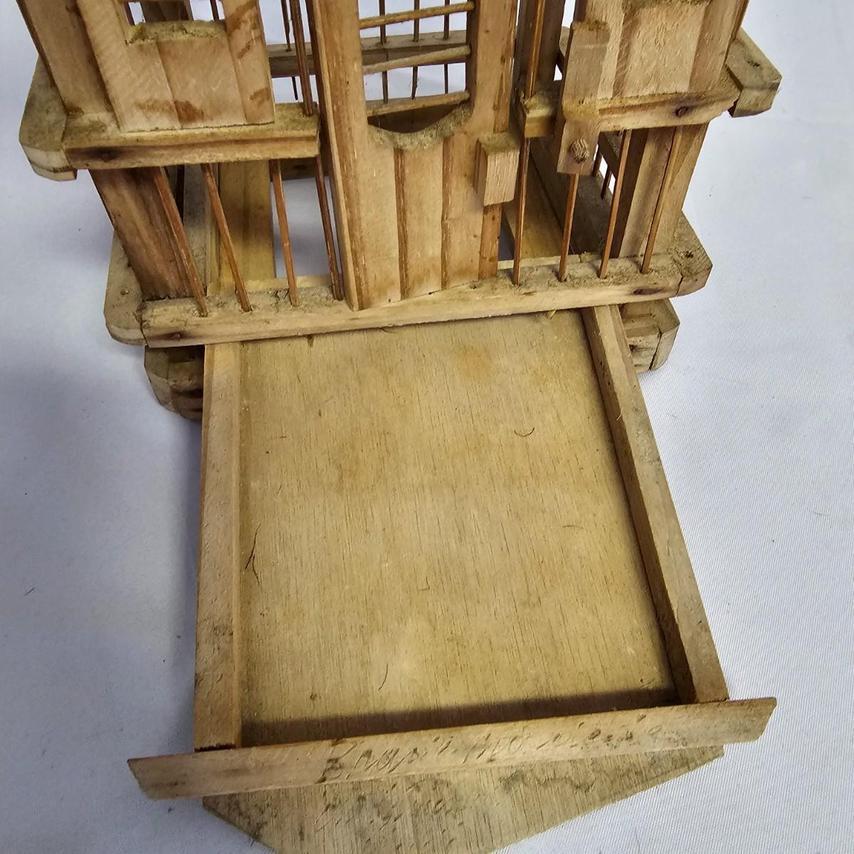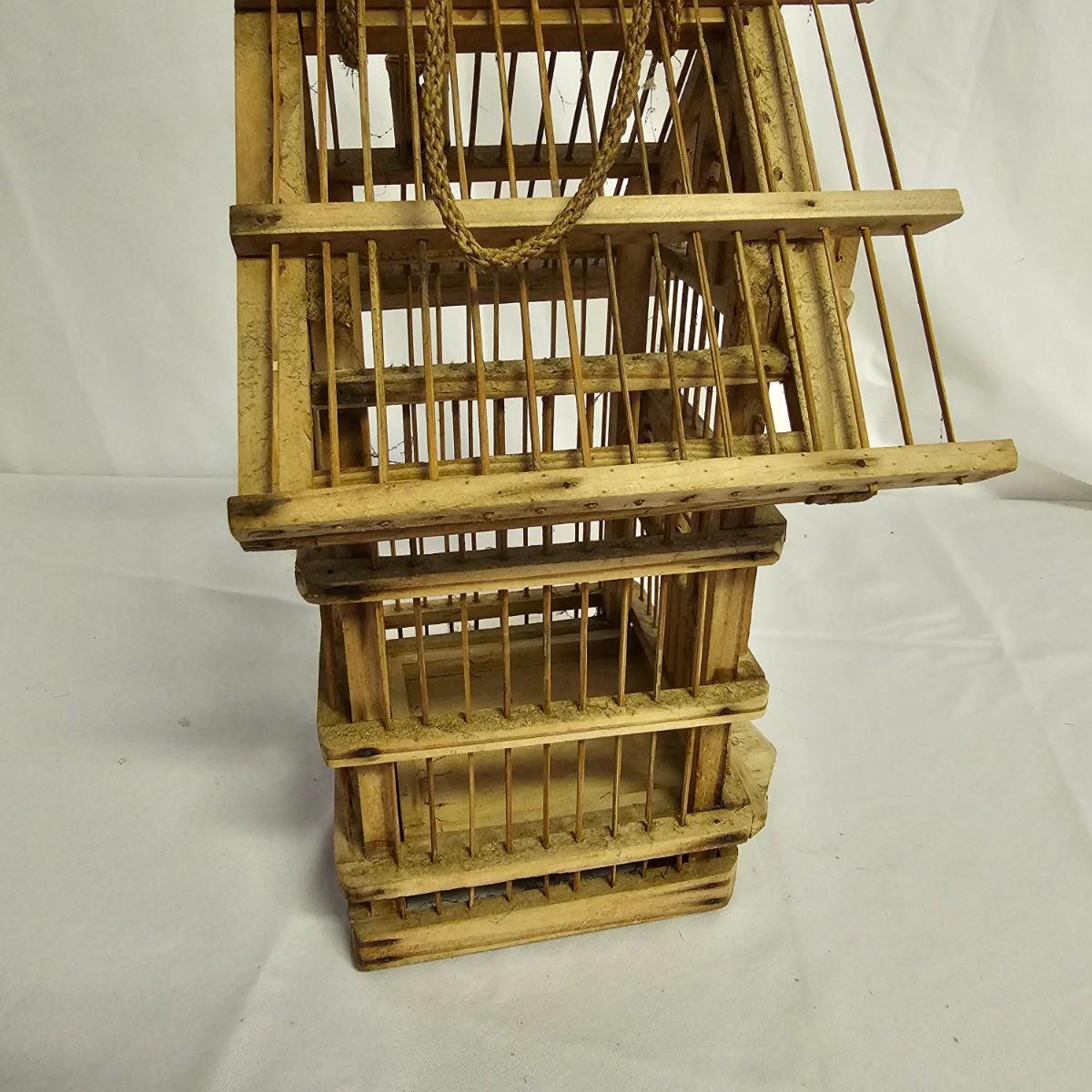 Handmade bamboo bird cage with braided hanging rope. Opening door, pull out base tray for cleaning. Cage measures 11.5" x 10" x 16"H. Latch on door missing a piece. See photos for details. Shipping available. Shipping can be costly. We suggest contacting our preferred local shipping provider, Postage Express, with dimensions and getting an estimate before bidding: (828) 670-5501 or postageexpress@yahoo.com.